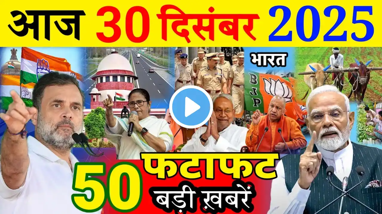 आज के मुख्य समाचार बड़ी खबरें टुडे ब्रेकिंग न्यूज़ 30 दिसंबर 2025 PMModi,U.P. Bihar,SAMACAHAR,MAUSAM