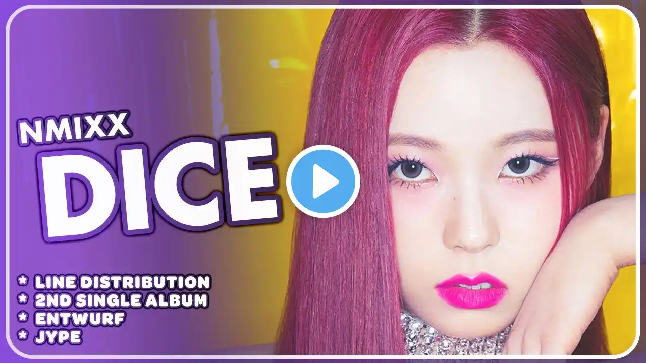 Artist: NMIXX (케플러) Song: DICE Album: ENTWURF Released: September 19, 2022 Do not reupload my videos thats weird... social media: ○ instagram: mlpd_24 ○ discord: odd#/3991 ○ twitter: @shyshyshy_123 about my videos: ○ I use vegas pro to edit my videos ○ I use gimp to make my layout ○ I use photoshop to make my thumbnails ✧ Request videos here: I dont do requests sorry ✧ Support me on ko-fi: https://ko-fi.com/mlpd24 I am open towards collaborating with anyone. tags: nmixx, lily haewon, sullyoon, jinni, bae, jiwoo, kyujin, jyp, dice, kpop, line distribution, ld, how would, how would sing, hw, music video, mv, dance practice, color coded, lyrics, color coded lyrics, lyrics color coded #nmixx #dice #linedistribution