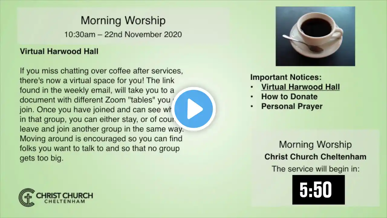 Sunday 22nd November 2020 Morning Worship on the feast of Christ the King
