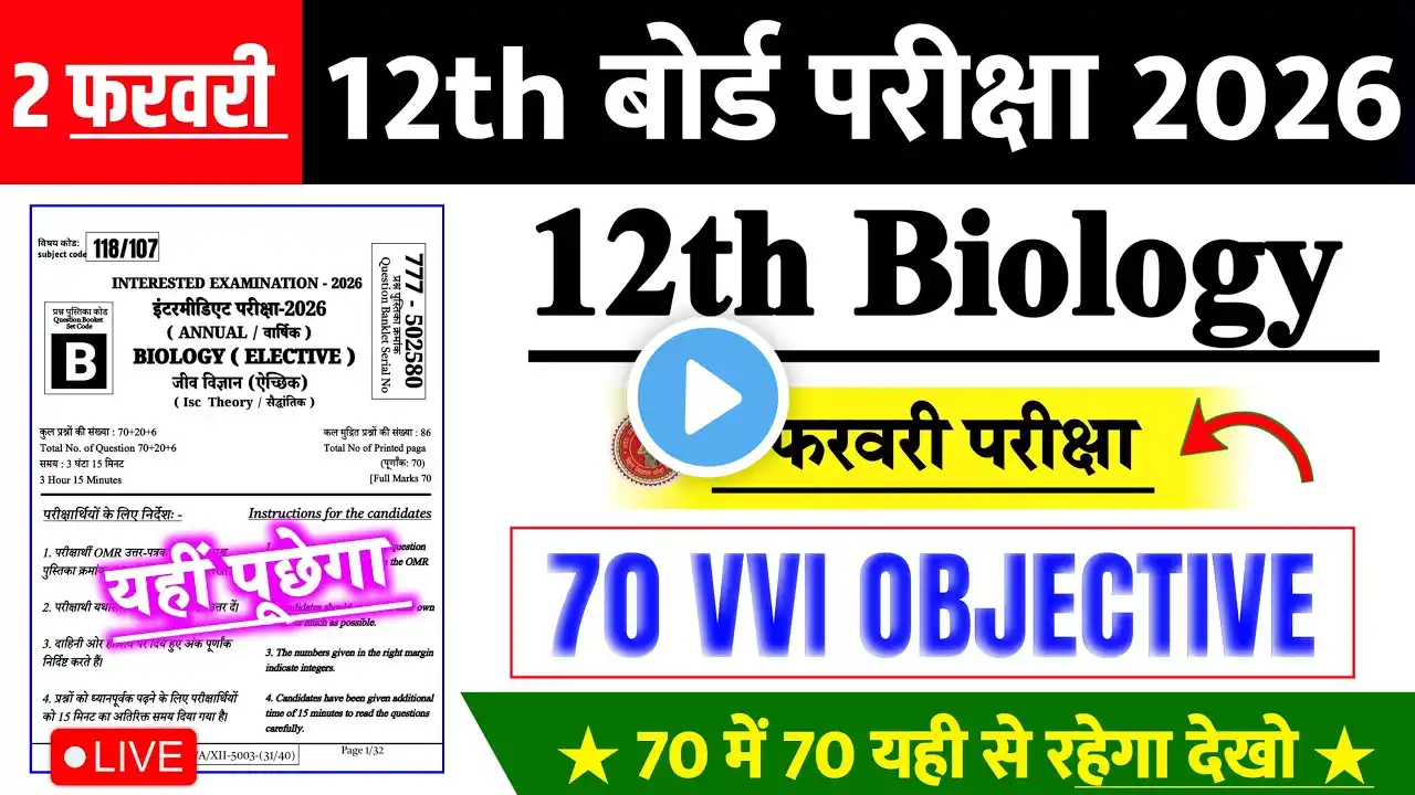 Class 12th Biology 20 Viral Subjective Question 2026 || 2 February Class 12th Biology Vvi Subjective
