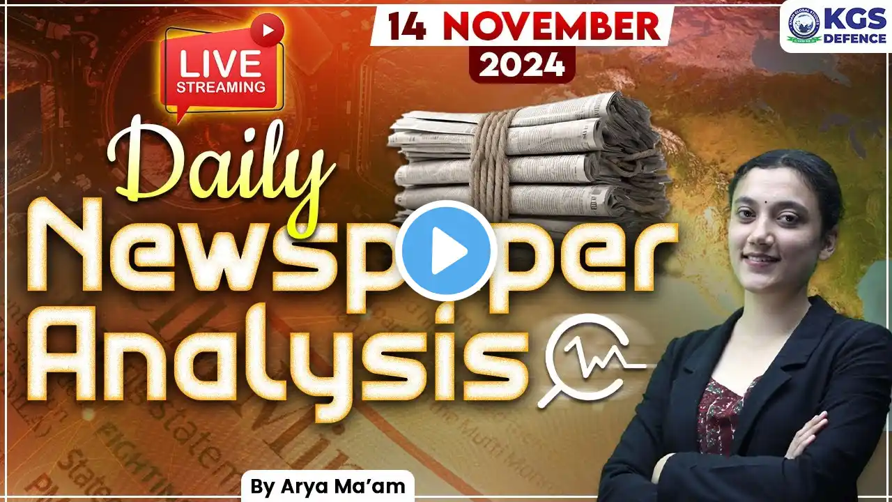 14 November 2025 | The Hindu and Indian Express Daily Newspaper Analysis | Vishal Sir | KGS Defence ✅ दीक्षित NDA (1 Year) Foundation Batch: https://www.khanglobalstudies.com/cou... ✅ Defence English (1 Year) Foundation Batch: https://www.khanglobalstudies.com/cou... ✅ NDA Mathematics (1 Year) Foundation Batch: https://www.khanglobalstudies.com/cou... ✅ NDA Science (1 Year) Foundation Batch: https://www.khanglobalstudies.com/cou... 👉🏻 NDA 1 2026 Target Batch (Dehradun Offline):📚 https://khanglobalstudies.com/courses... 👉🏻 NDA 2 2026 Target Batch (Dehradun Offline):📚 https://khanglobalstudies.com/courses... 👉🏻 CDS 1 2026 प्रखर Batch : https://www.khanglobalstudies.com/cou... 👉🏻 NDA 1 2026 योद्धा Batch : https://www.khanglobalstudies.com/cou... 👉🏻 CDS OTA 1 2026 प्रतिष्ठा Batch : https://www.khanglobalstudies.com/cou... 👉CAPF + CDS 2026 Foundation Batch (Dehradun Offline) Link:📚 https://khanglobalstudies.com/courses... 👉CAPF AC 2026 Foundation Batch Link:📚 https://khanglobalstudies.com/courses... 👉 Career in Defence Forces Inquiry Form: https://forms.gle/Qfg4gxha5qe7bjh97 Dear Student, "If you have cleared NDA, CDS, AFCAT Written Exam or you have received any direct entry SSB call letter, then kindly fill this Google form. Our team will contact you " Google Form :- https://kgs.yt/2L4nnk 👉SSB Interview KGS Defence📚 https://khanglobalstudies.com/defence... 🛒Visit KGS Defence Store👉🏻 https://store.khanglobalstudies.com/p... 👉Dehradun Branch Details : Address - KGS Dehradun, Shivalik Tower, Sashtradhara Road, Opposite Indian Oil Petrol Pump, Dehradun-248001 👉 Location Link - https://kgs.yt/tlUMV Contact No - +9311552308, +9319243326, +911353158201 👉 Musallahpur, Patna Branch Details : KGS Campus, Near Sai Mandir, Musallahpur Koiritola, Patna 800006 Welcome to KGS Defence Dehradun! 🚀 Join us as we prepare you for a successful career in the Indian Armed Forces. Our offline coaching program offers personalized training, expert faculty, and comprehensive study materials tailored to help you excel in various defence exams, including NDA, CDS, and AFCAT. 🌐 Website: https://khanglobalstudies.com 📲 KGS Application: Google Play Store: https://kgs.yt/2OS4xp & Apple App Store: https://apps.apple.com/in/app/kgs 🛒📚KGS Store Link: https://store.khanglobalstudies.com ------------------------------------------------------------------------ 📌 KHAN GLOBAL STUDIES SOCIAL MEDIA: 🌐 WhatsApp Channel: https://kgs.yt/vS1j 🌐 Facebook: / livekgs 🌐 X (Twitter): https://x.com/kgs_live 🌐 Instagram: / khanglobalstudies_official 🌐 Telegram: https://t.me/kgsdefence 🌐 LinkedIn: / khan-global-studies 🌐 Quora: https://www.quora.com/profile/Khan-Gl... 🌐 Pinterest: / khanglobalstudies ----------------------------------------------------------------------- 📌 RECOMMENDED CHANNELS FOR YOU: 🌐 Khan Global Studies: / @khanglobalstudies 📌 For any query, visit: https://khanglobalstudies.com OR Call on +91-8757354880 #NDA #CDS #SSBInterview #AFCAT #SSBPreparation #DefenceExam #IndianArmy #IndianNavy #IndianAirForce #OTA #IMA #INA #AFA #JoinIndianArmy #IndianDefenceForces #SSB #SSBTips #UPSCDefence #UPSCNDA #UPSCCDS #SSBMotivation #NDA2025 #CDS2025 #AFCAT2025 #NDA2026 #CDS2026 #AFCAT2026 #kgsdefencedehradun #khanglobalstudies #kgs #upsccapf #capf2026 #capfexam #aryamam #dailycurrentaffairs #novembercurrentaffairs2025 #novembercurrentaffairs #livecurrentaffairs #currentaffairstoday #currentaffairsnovember kgs,nda current affairs 2025,cds current affairs 2025,daily news analysis november,cds newspaper analysis,newspaper analysis today for cds,newspaper analysis today for nda,vishal sir current affairs today,vishal sir current affairs,daily news paper reading november,daily current affairs 2025,november current affairs 2025,cds current affairs today,nda current affairs 2025 in hindi,cds current affairs 2025 insight ssb,current affairs nda one shot,nda,cds,kgs defence,capf
