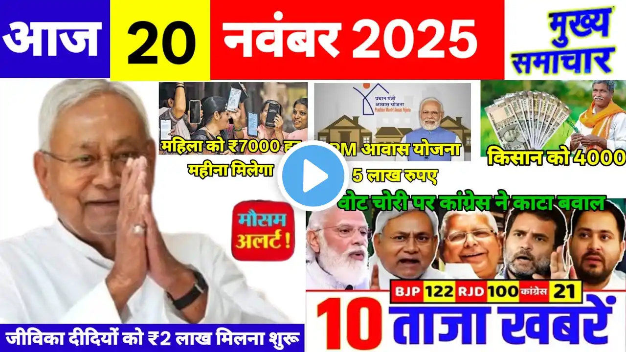 19 November 2025 | Aaj ki 25 Sabse Badi Khabrein | Today Biggest News | Ravish Kumar Primetime #JOIN #breakingnews Join us to know the biggest news of India and the world first! Here you will get the most accurate and fast information about politics, economy, sports, entertainment, technology, weather and viral news. TODAY TOP HEADLINES : Pahalgam terror attack: India bans all imports from Pakistan, third major action after airspace and Indus waters Manipur violence continues even after two years: Deep ethnic rift in Kuki and Meitei communities, thousands displaced Stampede at Lerai Devi temple in Goa, 6 devotees killed, more than 50 injured Karnataka minister's controversial statement: "Give me a suicide bomb Modiji, I will go to Pakistan" Iran-backed Houthis fire long-range missiles at Israel, Trump orders US military to retaliate PM Modi's warning to Pakistan: "This time the decision will be final" Pakistan tests 450 km range Abdali missile, show of power amid tension High alert at Colombo airport after news of Pahalgam attack suspect on Sri Lanka flight Red alert in many states including Delhi-NCR: Warning of strong storm, hailstorm and landslide NIA arrests Tahawwur Rana Interrogation intensified, voice and handwriting samples of 26/11 attack accused taken #trendingnews #super100news #superfastnews #topheadlines #LatestNews #hindinews #newsinhindi #hindisamachar #samachar #news #electionnews #topnews #pmmodi #DLS_News #topnewstoday #100news #upnewstoday #Breaking_News #Main_News #IndiaNews #hindinews #TopHeadlines #PMModiNews #BusinessNews #CricketNews #IPL2025 #WeatherNews General News Keywords: N2R, Breaking News, 18 May 2025, Trending News, Super 100 News, Superfast News, Top Headlines, Latest News, Hindi News, News in Hindi, Hindi Samachar, Samachar, News, Election News, Top News, PM Modi, DLS News, Top News Today, 100 News, UP News Today, Breaking News, मैं समाचार, India News, Hindi News, Top Headlines, PM Modi News, Business News, Cricket News, IPL 2025, Weather News, India News, Breaking News, Aaj Ki Taza Khabar, Hindi News, Today News, Latest News, India Breaking News, Top Headlines, Viral News, Live News, Trending News, Latest Samachar, Bharat News, Desh Duniya Ki Khabar, News Updates, daily news, news of the day, hindi news india, today's main samachar, main news of today 18 may 2025, Political & Government News : 1). Pm narendra modi news today 2). cm yogi news today 3). Rahul gandhi news today speech hindi 4). cm rekha gupta today news 5). Arvind kejriwal news today hindi 6). Cm nitish kumar latest news today 7). Pahalgam Terror Attack 8). India-Pakistan War On Pahalgam Attack LIVE: पाकिस्तान ने तान दी मिसाइलें! युद्ध शुरू LIVE Sports News : 1). Cricket news today 2). IPL 2025 news today Weather & Natural Disaster News: 1). Today's weather information 2). Today's weather news 3). How will the weather be today 4). Today's weather situation 5). Weather update today Your Queries: ravish kumar, ravish kumar news, ravish kumar on waqf board, ravish kumar live, ravish kumar today news hindi, ravish kumar official channel, ravish kumar news today, ravish kumar news today's latest news, ravish kumar news today, ravish kumar news today's, ravish kumar's latest news today, ravish kumar news aaj tak, today's news with ravish kumar, ravish kumar's today's news, ravish kumar's new news today, ravish kumar news today, ravish kumar news live, ravish kumar news channel, ravish kumar news today waqf board, ravish kumar news today live, ravish kumar news today in hindi, ravish kumar news latest, ravish kumar news 24, ravish kumar news today's. "This channel is created for the purpose of providing news and information only. All the information given in this video is based on various public sources, news agencies and reports. We do not support spreading any kind of rumours, misinformation or tarnishing the image of any person, community, religion, government or organization. 🔹 We follow the following laws and policies: ✅ Indian Penal Code (IPC) Section 499 and 500 – We do not defame any person. ✅ IT Act 2000 – The news posted on this channel is taken from certified sources and does not promote fake news. ✅ Copyright Act, 1957 – Any external content (video clips, audio, images) used in the video is only for the purpose of news reporting and providing information, which comes under 'Fair Use'. ✅ IPC Section 153(A) and 295(A) – We do not hurt the feelings of any religion, caste or community We do not support content that hurts religious sentiments. ✅ IPC Section 505(1) & 505(2) – We do not promote any kind of violence or news that incites unrest in society. Copyright Disclaimer: Under Section 107 of the Copyright Act 1976, allowance is made for "fair use" for purposes such as criticism, comment, news reporting, teaching, scholarship and research.