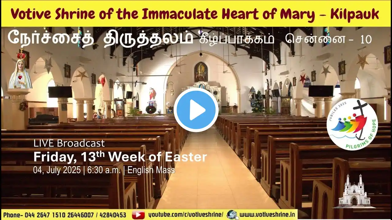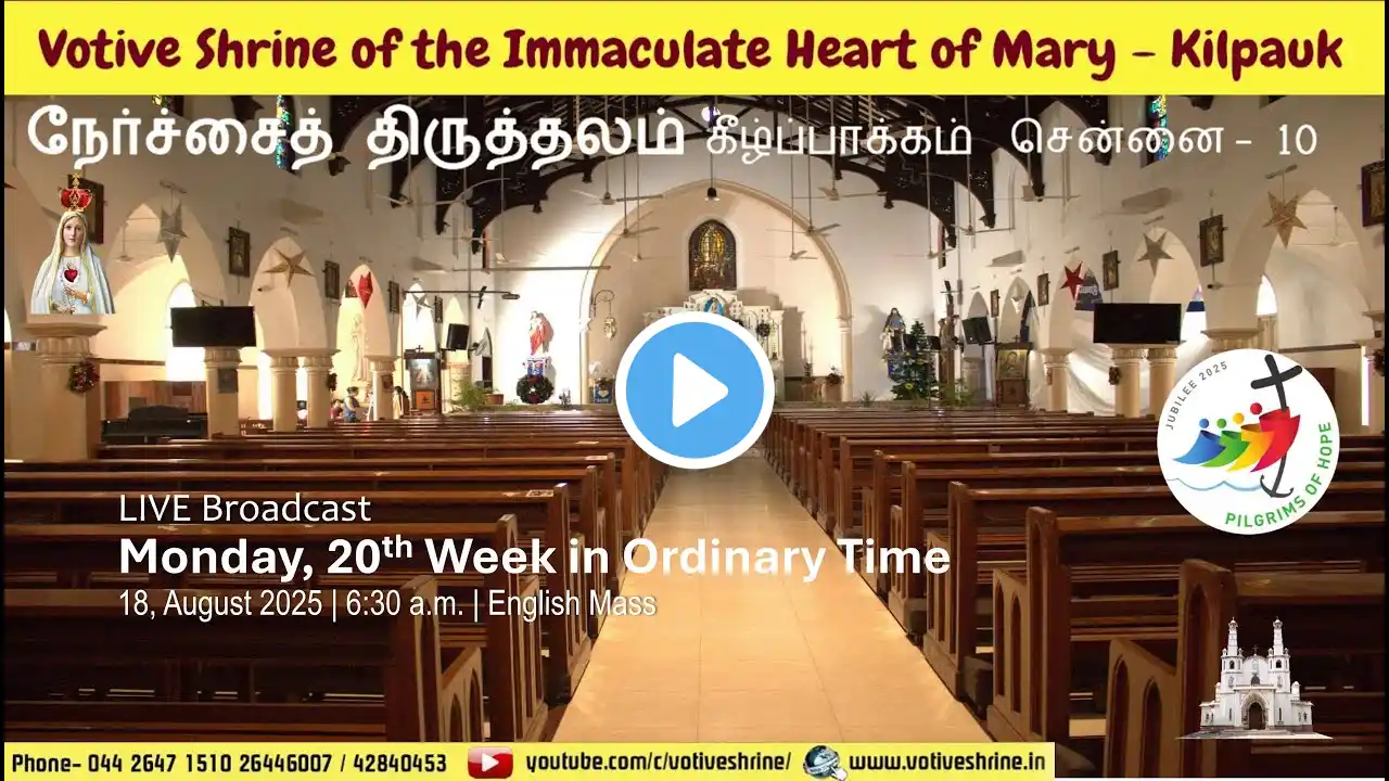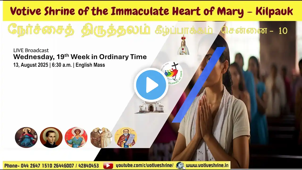 Votive Shrine Daily Mass | Live Stream | Sept 19, 2025, Thursday, 6:30 AM | English Mass - Green FRIDAY, 24TH WEEK IN ORDINARY TIME Readings: First Reading: First Timothy 6: 2c-12 Responsorial Psalm: Psalms 49: 6-7, 8-10, 17-18, 19-20 Alleluia: Matthew 11: 25 Gospel: Luke 8: 1-3 ---------------------------------------------------- SAINT OF THE DAY St. Joseph of Cupertino, Priest (Memorial) __________________________ WhatsApp- +919498410200 Subscribe to our channel here: https://www.youtube.com/c/VotiveShrin... Stay connected on social media: / votiveshrine / 207897805895278 LIVE ON: http://votiveshrine.in/?page_id=1671 / live Visit us at https://votiveshrine.in