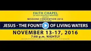 Mission Convention 2016 - Nov 17, 2016 [Thursday Night] Speaker: Apostle Donald Purge