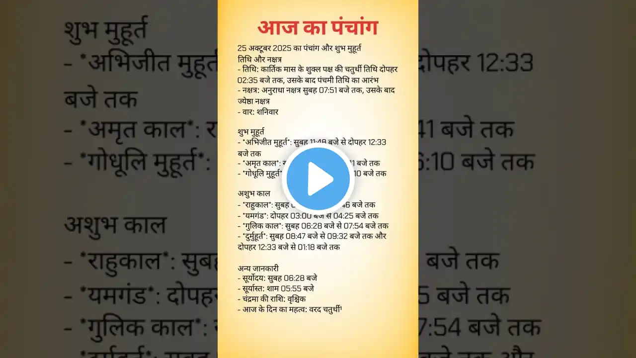 1 अक्टूबर 2025 का पंचांग | आज का रखपन | शुभ मुहूर्त, राहुकाल, सूर्योदय-सूर्यास्त, व्रत-त्योहार 1 अक्टूबर 2025 का हिन्दू पंचांग (Hindu Panchang Today) और आज का रखपन देखें। इस वीडियो में आपको विस्तार से जानकारी मिलेगी 👇 🌞 सूर्योदय और सूर्यास्त का समय 🌙 चन्द्रमा की स्थिति 🕑 आज का राहुकाल और गुलिककाल ✅ शुभ मुहूर्त (Shubh Muhurat Today) 🙏 आज के व्रत एवं त्योहार (Vrat & Tyohar 1 October 2025) 👉 आज का पंचांग (Aaj Ka Panchang 1 October 2025) जानने के लिए वीडियो पूरा देखें और सही समय पर अपने कार्य करें। 1 अक्टूबर 2025 का पंचांग, 1 अक्टूबर पंचांग, आज का पंचांग, Aaj Ka Panchang, #bhaktivaanidivine आज का रखपन, आज का शुभ मुहूर्त, आज का राहुकाल, daily panchang 1 October 2025, hindu panchang today, 1 October vrat tyohar #पंचांग #चंद्रमा #1october2025 #शुभमुहूर्त #धर्म #Horoscope #Astrology #bhaktivaanidivine #DailyPanchang #MoonPhase #ViralShorts october 2025 का पंचांग | आज का पंचांग | Aaj Ka Panchang 1 october 2025 | शुभ मुहूर्त व राशिफल शुभ-अशुभ मुहूर्त: आज का अभिजीत मुहूर्त, विजय मुहूर्त, अमृत काल, शुभ मुहूर्त और अशुभ मुहूर्त। @bhaktivannidivine दैनिक चौघड़िया: आज का चौघड़िया और उसके अनुसार शुभ कार्य करने का समय। @bhaktivaanidivine महत्वपूर्ण ज्योतिषीय जानकारी: आज की तिथि, नक्षत्र, योग, करण। सूर्य राशि और चंद्र राशि। माह, ऋतु, पक्ष, युग। राहु काल, गुलिक काल, यमगण्ड। दिशा शूल, नक्षत्र शूल, राहु वास, चंद्र वास। सूर्योदय और सूर्यास्त: आज सूर्योदय और सूर्यास्त का सटीक समय। चंद्रोदय और चंद्रास्त: आज चंद्रोदय और चंद्रास्त का समय। aj ka panchang 1 october 2025 Thursday, aaj ka panchang, aaj ka hindi panchang, hindi panchang of 1 october 2025, #bhaktivaanidivine 1 october 2025 Wednesday ka hindu panchang, 1 october 2025 ka panchang, 1 october 2025 abhijit muhurat, 1 october 2025 ka abhijit muhurat, vijay muhurat, amrit kal, aaj ka shubh muhurat 1 october 2025, 1 अक्टूबर 2025 ka shubh muhurat, 1 october 2025 ka ashubh muhurat, 1 october 2025 ka rahu kal, aj ka disha shool 1 october 2025 Wednesday, aj ki tithi 1 october 2025 aj ka nakshatra 1 अक्टूबर 2025 Wednesday , aj ka yog 1 अक्टूबर 2025 Wednesday, aj ka chandra vas 1 october 2025 Wednesday , aj suryoday kab hoga 1 october 2025 Wednesday , aj chandroday kab hoga 30 September 2025 Thursday, aj suryast kab hoga 30 September 2025, 1 october 2025 का पंचांग, 30 सितंबर 2025 दिन Monday पंचाग, आज का पंचांग 1 october 2025, panchang, today panchang, daily panchang, dainik panchang, panchangam, astrology, vedic astrology, tithi, rahu kaal, shubh muhurat, choghadiya, Hindu calendar, Indian calendar, panchang in hindi, 2025 panchang, September panchang, Navratri, Sharadiya Navratri, Maa Chandraghanta, #shorts #astrology #panchang #aajkapanchang #bhaktivaanidivine #viral #trending #youtubeshorts #foryou #viralvideo #navratriNavratri 2025 Day 7, Goddess Kalaratri Navratri, Maa Kalaratri blessings, Navratri Day 7 color royal blue, Kalaratri puja significance, Royal blue Navratri meaning, Navratri September 30 2025, Maa Kalaratri mantra power, Fierce form of Durga, Navratri spiritual courage, Navratri, Navratri rules and #Navratri2025 #bhaktivaanidivine #Day7Navratri #MaaKalaratri #DestroyerOfFear #NavratriColors #RoyalBlueVibes #DivineProtection #ShaktiWorship #NavratriEnergy #FearlessSpirit #Navratri #NavratriBlessings, #MaaDurga #NavratriFasting #NavratriRituals #DivineEnergy #SpiritualNavratri #NavratriDevotion #DurgaMaaBlessings #NavratriGuidelines #NavratriDoAndDonts #SacredNavratri #NavratriSpirituality #ShaktiFestival #NavratriEnergy #DurgaBhakti #NavratriCustoms #NavratriWisdom #GoddessDurga #NavratriSecrets Durga Ashtami 2025 | दुर्गा अष्टमी 2025 कब है | दुर्गा अष्टमी 2025 🙏 साल 2025 में दुर्गा अष्टमी मंगलवार, 30 सितम्बर को मनाई जाएगी। यह नवरात्रि का सबसे शुभ दिन माना जाता है। इस दिन माँ दुर्गा के महाष्टमी रूप की पूजा, कन्या पूजन और हवन का विशेष महत्व है। ✨ दुर्गा अष्टमी पर उपाय: 👉 9 कन्याओं को भोजन कराएँ और चुनरी भेंट करें, इससे माँ दुर्ग