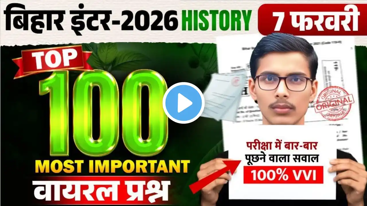 Class 12th History VVI Objective Questions Answer 2026 || 12 History Important Questions Bihar Board Class 12th History Objective Questions For Board Exam 2026 || History Class 12 VVi Question Answer Class 12th history Viral Objective Question Answer 2026 | 12th history Vvi Question 2026 Class 12th history Important Question Answer 2026 | 12 history ka Vvi Question 2026 ✅ Download 4Study Power App: https://play.google.com/store/apps/de... ✅ For Admission: 7667671300 ✅ Official Website : https://4studypower.com/ 💗💗💗💗Important Playlist 💗💗💗💗 Computer Science: • 12th Computer Science Course 2026 | Bihar ... History: • 12th Class History Full Course In Hindi Hindi: • 12th Class Hindi Bihar Board Full Course I... English: Geography: • 12th Class Geography Full Course In Hindi Political: • 12th Class Political Science Full Course I... Economics: Home Science: Psychology: Sociology: Biology: ❣️❣️Social Links❣️❣️ Join WhatsApp Channel: https://whatsapp.com/channel/0029VaE0... Join Telegram: https://t.me/+jRz5RrEYdxJmZGQ1 ✅ Related Topics: Class 12th history Viral Obj & Subjective Question Answer 2025 | 12th history Important Question Class 12th history VVI Viral Subjective Question Answer 2025 | 12th history Important Question Class 12th history 5 Feb MVVI Viral Question Answer 2025 | 12th history Important Question 2025 Class 12th history VVI Viral Question Answer 2025 | 12th history Important Question Answer 2025 bihar board history class 12 vvi objective question 2026 bihar board class 12 history objective question 2026 class 12th history objective question answer 2026 class 12th history vvi objective question 2026 history class 12th vvi objective question answer bihar board history ka objective question class 12 history bihar board class 12 important question 2024 bihar board inter history objective questions 2026 class 12 history vvi objective question answer in hindi class 12 history objective question 2025 12th history important question for 2025 history class 12 question answer in hindi 12th history important questions 2025 hs history suggestion 2025 class 12 history suggestion 2025 history class 12 question bank 2025 12th history questions 2025 history class 12 model paper 2025 12th history important questions 12th class history most important question answer 2025 class 12 history objective question 2025 12th class history question answer for 2025 board exam history class 12 objective question 2025 class 12th history viral question 2025 class 12 history 12th history viral questions answers 2025 history viral questions answer for class 12 history viral question answer 2025 12th history vvi question answer history class 12 question answer in hindi 12th class history question answer for 2023 board exam 12th class history important & selected question answer for board exam 2024 history class 12 question answer in hindi history most important question answer 2026 exam 12th history important question for 2026 history important question answer for board exam 12th arts history question,12th history questions 2026 history vvi question answer 12th history important questions class 12 history model paper 2026 solution 12th history model paper 2025 history model paper solution 2026 class 12th history model paper history class 12 model paper 2025 history model paper solution class 12 history model paper 2026 history model paper solution 2026 history official model paper solution for class 12 class 12th history model paper solution up board class 12th history model paper 2026 history model paper class 12 history model paper solution 2026 12th history model paper 2025 history class 12 model paper 2025 12th history ka model paper 2025 bihar board class 12th history model paper 2025 history official model paper solution for class 12 class 12 history model paper 2025 solution class 12 history model paper 2026 solution history model paper class 12th 2025 bihar board bihar board history model paper 2025 class 12th solution 12th history model paper 2026 ✅ Related Hashtags: #12thhistory #4studypower #4studypower_live #4studypower_test #12th_class_arts_vvi_question_answer_2025 #class_12th_important_question_answer #biharboard #biharboardexam #history_12th_ka_subjective_question #history_12th_vvi_objective_live #history #12th_history_model_paper_solution_2026 #biharboard_study #selfstudy #educationbaba #educationbyguptaji #live_class #history_vvi_question_answer #history #upboard #jacboard #rseb #bseb #onlineclasses #boardexam2026 #biharboardexam2026 #biharboard #cbse #bseb #upboard #mpboard #rbse #jacboard #rajasthanboard #TanuClasses #vidyanand #boardexamstudy #askboard #safalacademy #vviobjective Thanks For Watching