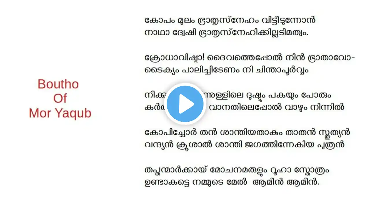 February 24, 2020 Hymns of Shubkono (Service of Reconciliation) - Part 2 | ശുബ്ക്കോനോ ശുശ്രുഷയുടെ പാട്ടുകൾ - ഭാഗം 2 Chanted by - Rev. Fr. Saji Markose | റവ. ഫാ. സജി മർക്കോസ് Two hymns in this video - 1. Paapam cheythen (പാപം ചെയ്തേൻ) - Eniyono 2. Sneha tharuve nee param (സ്നേഹത്തരുവേ! നീ പാരം) - Quqoyo As we prepare for the Great Lent, let us meditate on these hymns, which teach us the meaning of repentance and the great mercy of our Lord! Follow our Facebook page: / hymonutho The Shubhkono service is on the first Monday of the Great Lent after the third hour prayers. This service of forgiveness is a preperation for Great Lent and is marked by 40 prostrations with the kiss of peace at the end. The Church, begins Great Lent with the 'Day of Forgiveness,' and sets her journey into penitence. With kneeling & prostrating, her people look ahead to Kymtho, the great feast of the Light. The service of reconciliation is conducted on Monday, the first day of the Great Lent, at the end of sixth hour. The Service of Reconciliation or Shubkhono, stands at the 'threshold of Great Lent.' The service marks the actual doorway into Lent, the threshold on the other side of which stands the fullest measure of ascesis that the Church metes out to the whole of her faithful throughout the world. As we stand at the threshold of the fast, we sing of him who stood before the gates of Eden. #fasting #prayer #repentance #kneeling #forgiveness #lent #greatlent #church #christ #christianity #syriacorthodox #malankara #malayalam