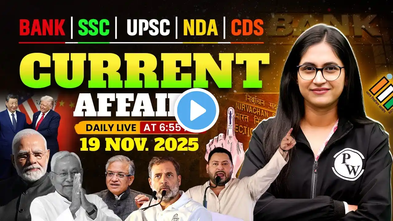 Current Affairs Today | 11 November Current Affairs 2025 | Daily Current Affairs by Sushmita Ma'am 📅 Stay updated with the most important daily current affairs for UPSC, SSC, Banking, Railways, and other competitive exams. In this video, Sushmita Ma'am covers the top headlines, national & international news, economic updates, and more to boost your exam preparation. ------------------------------------------------------- ✨ Free Guidance For All Banking Exams:- https://forms.gle/HEsVNS8fvTsbVPaS6 📌 Daily Current Affairs By Sushmita Tripathi Ma'am: https://physicswallah.onelink.me/ZAZB... ------------------------------------------------------- 📌 Our Affordable Batches for Bank & Insurance Exams: 👉 Bank Mahapack - https://physicswallah.onelink.me/ZAZB... 👉 Bank SSC Mahapack: https://physicswallah.onelink.me/ZAZB... 👉 AIM 2.0 Power Batch 2026 Basic to Advanced: https://physicswallah.onelink.me/ZAZB... 👉 Banking Test ONE PASS: https://physicswallah.onelink.me/e0oG... ------------------------------------------------------- Monthly Current Affairs Playlist : 👉 November Current Affairs 2025 Playlist: • Current Affairs Today || November Current ... ------------------------------------------------------- For Free Content, Download our App:- 📲 PW App/Website: https://physicswallah.onelink.me/ZAZB... 📚 PW Store: https://physicswallah.onelink.me/ZAZB... ------------------------------------------------------- 📌 Our Social Media Profile: 🌐 Telegram: https://t.me/pwbankingwallah 🌐 Instagram: https://instagram.com/bankingwallah_?... 🌐 Twitter: / physics__wallah 🌐 LinkedIn: / admin ------------------------------------------------------- 📌 Physics Wallah Other YouTube channel: 🌐 Physics Wallah - Alakh Pandey: / @physicswallah 🌐 JAIIB CAIIB Wallah - / @jaiibcaiibwallah ------------------------------------------------------- 📌 For any Queries or Complaints visit: https://bit.ly/PW_Queries OR give a Missed Call on 07019-243-492 ------------------------------------------------------- Lecture by Sushmita Tripathi Ma'am 64185d941a8f1b0018b2e6a3 #CurrentAffairs #CurrentAffairsToday #BankingWallah #DailyCurrentAffairs #CurrentAffairs2025 #CurrentAffairsbySushmitaMam #Current_Affairs #TodayCurrentAffairs #PW #NovemberCurrentAffairs2025