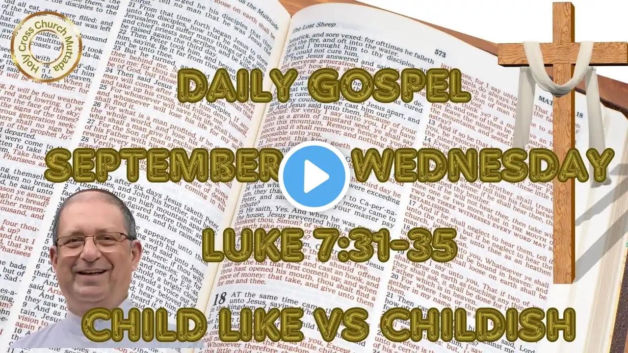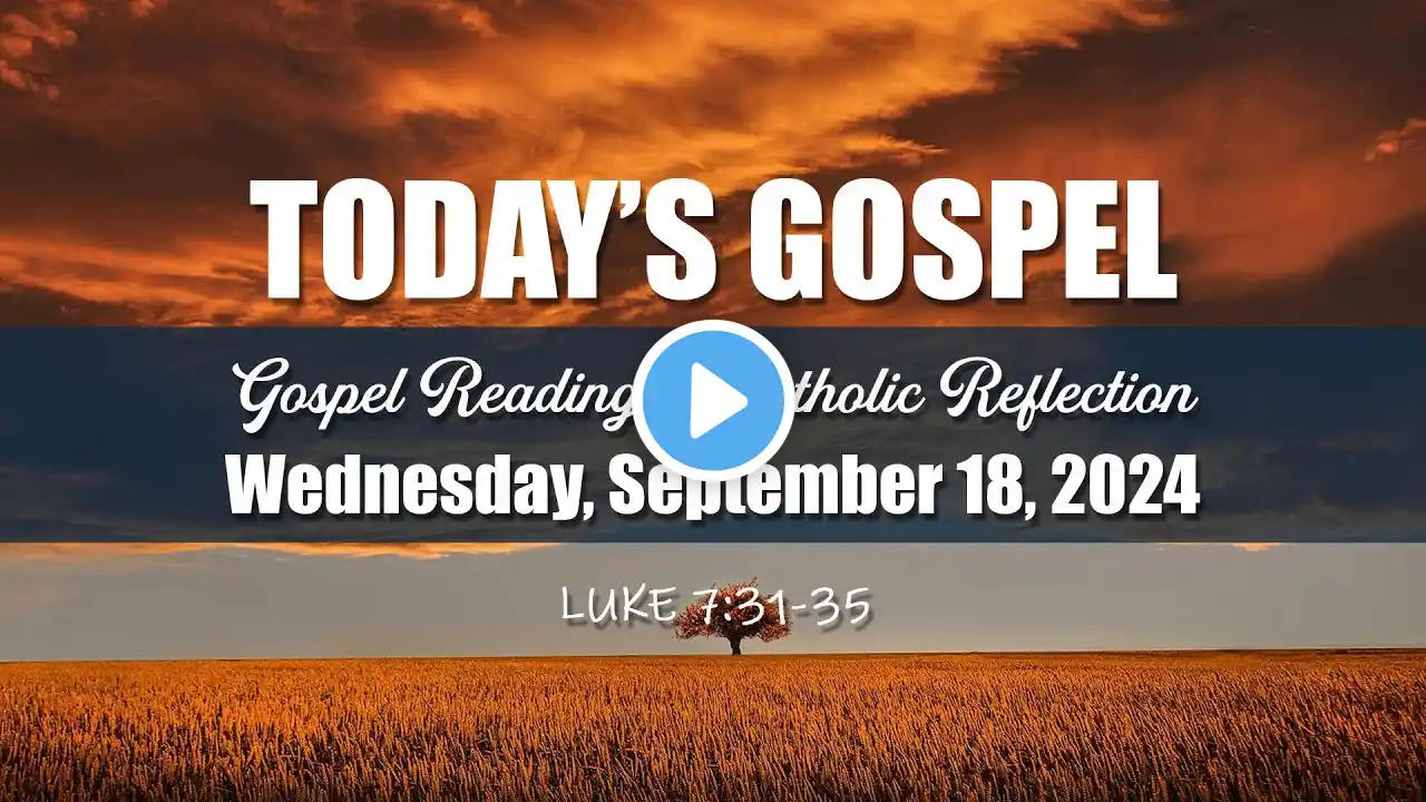 Today's Catholic Bible Reading & Gospel Reflection for 18th September 2024 , Wednesday of the Twenty-fourth Week in Ordinary Time Year B From the Gospel according to Luke Lk 7:31-35 Jesus said to the crowds: “To what shall I compare the people of this generation? What are they like? They are like children who sit in the marketplace and call to one another, ‘We played the flute for you, but you did not dance. We sang a dirge, but you did not weep.’ For John the Baptist came neither eating food nor drinking wine, and you said, ‘He is possessed by a demon.’ The Son of Man came eating and drinking and you said, ‘Look, he is a glutton and a drunkard, a friend of tax collectors and sinners.’ But wisdom is vindicated by all her children.” DAILY CATHOLIC GOSPEL READING & WORDS OF THE HOLY FATHER https://www.vaticannews.va/en/word-of... Daily Catholic Mass Reading Daily Catholic Bible Reading Audio Visual Bible HD Bible Reading #luke7 #compare #wisdom #children #sonofman #ThirstforCHRIST#GospelReadingforToday #dailygospelreflection #GospelandReflection #dailygospel #catholicgospel#gospeltoday #todaysreadings #dailycatholicgospelreading #catholicreflection #dailygospelreading #september2024 #wednesday today's holy mass reading,today's catholic mass reading,daily mass readings 2024,Today's Gospel Reading,today's mass reading catholic,mass readings english,Gospel Reading,mass,catholic,bible,the word today,mass readings for today,catholic mass reading,catholic mass today,catholic mass,catholic daily mass readings 2024,catholic readings today,daily catholic readings, mass readings and reflections,catholic mass reading,mass readings for today,daily gospel reflection,catholic daily mass readings and reflection,catholic daily mass readings today,catholic daily mass reflection,daily catholic readings,daily mass readings and reflections,today's catholic mass readings and reflections,daily mass readings,today's gospel reading,gospel reading for today,today's mass reading catholic #TodayGospelReading #TodayGospelReading #GospelandReflection #HolyMassReadings #gospel #reflection #catholicprayers #catholicgospel #catholicreflection #catholicdailyreflectiontoday#reading #catholic #catholicmass #catholicprayer #eucharist #english #amen #hallelujah #todaygospelreading #gospelreadingfortoday #gospelandreflection #holymassreadings