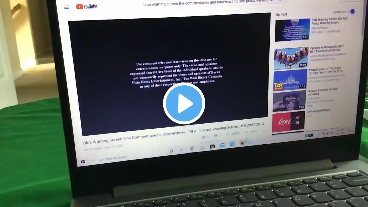 Blue warning screen/The commentaries and interviews screen/FBI Anti-piracy warning screen (2010)