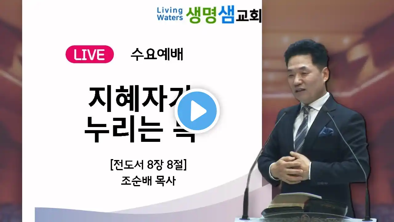 정왕동 생명샘교회 3월 22일 수요예배 조순배목사 #생명샘교회 #경기시흥