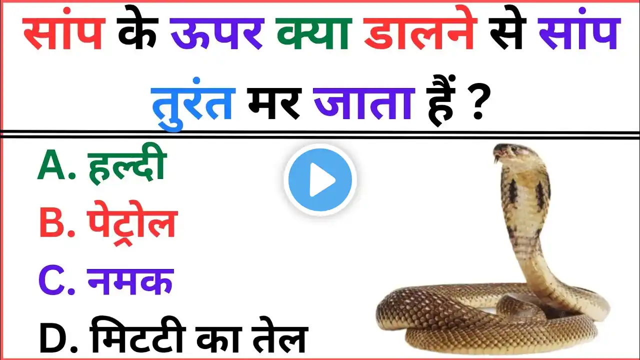सामान्य ज्ञान | General Knowledge | Top 30 GK/GS questions | SSC GD, MTS, RPF, CRPF | GK quiz इस वीडियो में हम प्रस्तुत कर रहे हैं सामान्य ज्ञान से जुड़े 30 रोचक तथ्य जो आपकी जानकारी को बढ़ाएंगे! इस क्यूट और शिक्षाप्रद वीडियो में विविध विषयों पर सवाल और जवाब दिए गए हैं, जैसे इतिहास, विज्ञान, भूगोल और समकालीन घटनाएँ। इस ज्ञानवर्धक यात्रा में शामिल हों और अपने दोस्तों के साथ साझा करें। ज्ञान का ये खजाना आपके लिए है! Topic Covered:- GK quiz in Hindi general knowledge in Hindi Hindi general knowledge Hindi question Hindi gk quiz Gk questions answers general knowledge GK general knowledge questions answers GK quiz top GK GK in Hindi Hindi GK important GK questions answers India GK जीके प्रश्न उत्तर Vishu Gk VISHU GK vishu gk Vishu Gk 2025 #GK #सामान्य_ज्ञान #generalknowledge ____________________________________________ ⚠️ Disclaimer: 🚫 Copyright Disclaimer Under Section 107 Of The Copyright Act 1976, allowance is made for "fair use” for purposes such as criticism, comment, news reporting, teaching, scholarship and research. Fair use is a use permitted by copyright statute that might otherwise be infringing. Non-profit, educational or personal use tips the balance in favor of fair use. ⚠️Disclaimer: 🚫This video is made for only providing knowledge and informations. The channel is not providing any harmful content. ____________________________________________ Contact Us:- [email protected] Guys Video achi lagi to like kar dena or channel subscribe kar dena.... Thanks for watching.....