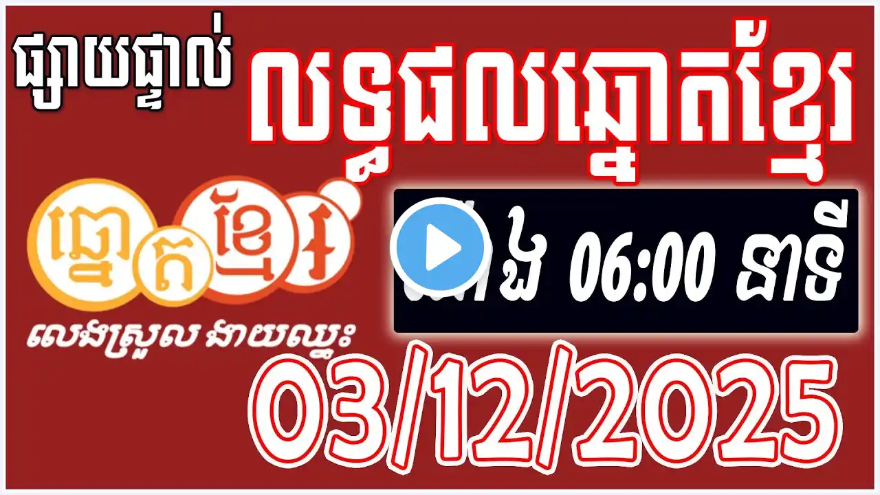លទ្ធផលឆ្នោតខ្មែរ | ម៉ោង 6:00 នាទី | ថ្ងៃទី 03/12/2025 | ឆ្នោត ២