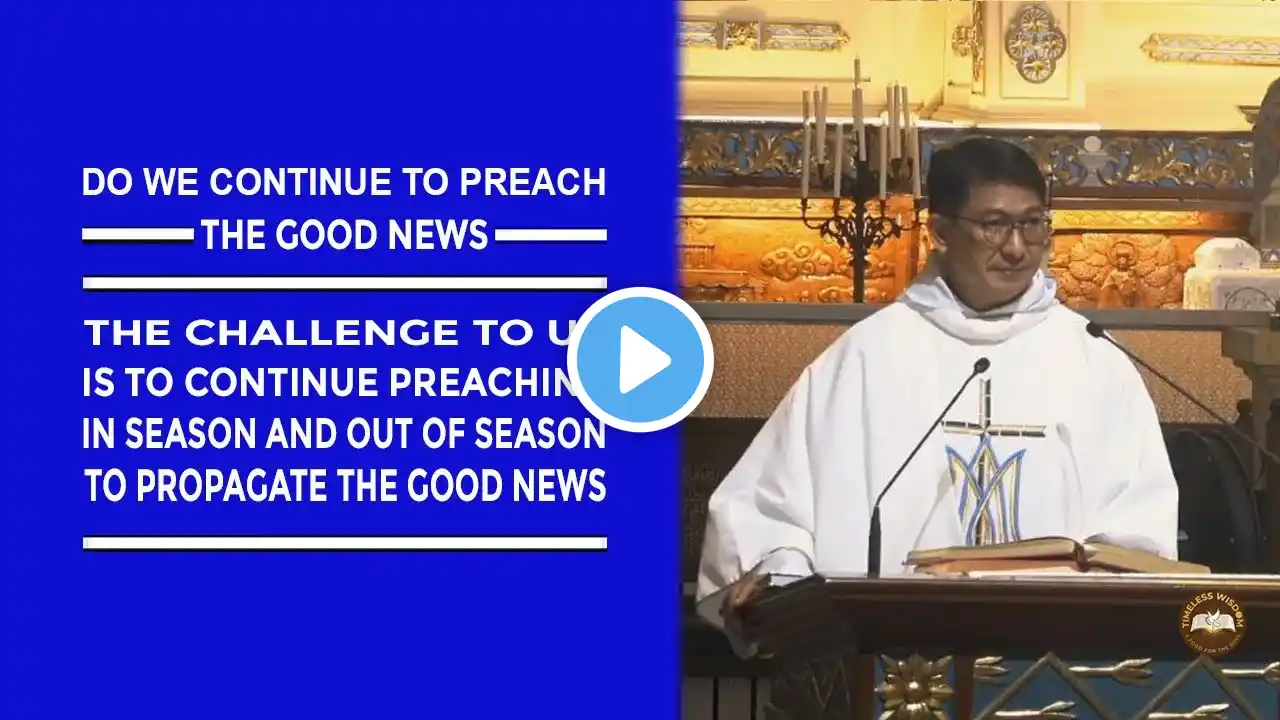 Yun yung lagi pong kailangan natin ipaalala sa ating sarili Our devotion to the blessed mother is always Christo-centric si Hesus ang centro ng debosyon na ito tinutulungan niya tayo na makarating at makinig kay Hesus na kanyang anak 1st Reading: Ex 19:3-8a Responsorial Psalm: Ps 119:1-2, 10-11, 12 and 14, 15-16 Alleluia:: Luke 11:27 Gospel: John 2:1-11 Rev. Fr. Carlo Rey Canto, OP Mass Presider | Homilist Our Devotion to the Blessed Mother | 1st Day Novena Mass "Maria, kaisa sa ating pakikilahok sa misyon" Minor Basilica of Our Lady of the Rosary of Manaoag September 22, 2023 | 6:00 AM Special thanks to: Rev. Fr. Carlo Rey Canto, OP Video Credits: ManaoagDominicanRadio Manaoag Official Website: https://www.manaoagminorbasilica.org/ #1stDayNovenaMass #homilyrevfrFrCarloReyCantoOP #OurLadyOfManaoag #Dominicansph #RosaryFeastOurLadyoftheRosaryofManaoag2023 Thank you for your continued Support! That in all things God may be glorified! Timeless Wisdom | Homily | Our Devotion to the Blessed Mother | 1st Day Novena Mass | Fr Carlo Rey Canto OP Timeless Wisdom a Food for the Soul