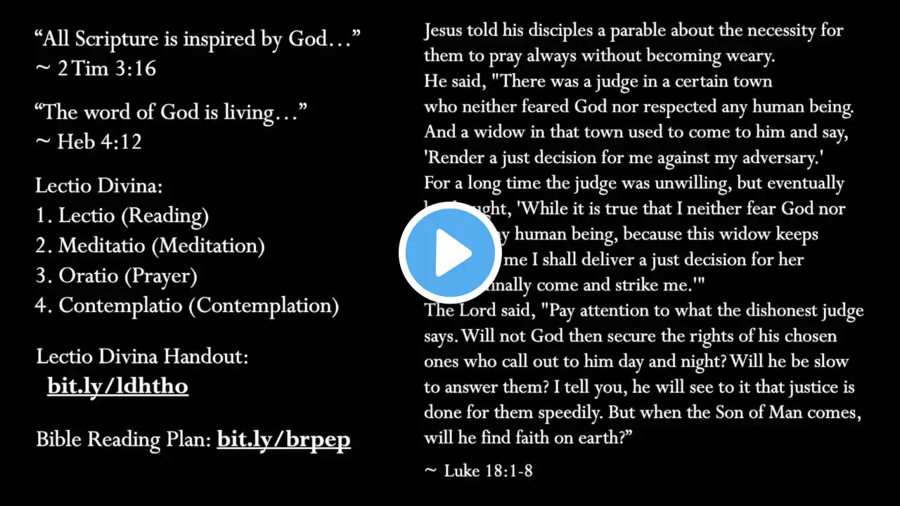 29th Sunday in Ordinary Time Year C. First Reading: Exodus 17:8-13 Psalm 121: 1-2, 3-4, 5-6, 7-8. Second Reading: 2 Timothy 3:14-4:2 Gospel Acclamation: Hebrews 4:12 Gospel Luke 18:1-8 Music Artist: John Okah Rev. Fr. Innocent Enemuo, LSE (Italy)