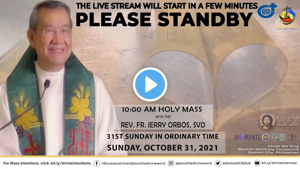 Holy Mass 10:00AM, October 31, 2021 at the Chapel of the Blessed Trinity, Diocesan Shrine of Jesus the Divine Word, Christ the King Mission Seminary, Quezon City. For Homily only, click this: • 𝙎𝙞𝙣𝙣𝙚𝙧 𝙤𝙧 𝙎𝙖𝙞𝙣𝙩: 𝘼 𝙇𝙞𝙛𝙚 𝙤𝙛 𝙇𝙤𝙫𝙚 | HOMILY 3... This Holy Eucharist is celebrated via online by the Rev. Fr. Jerry Orbos, SVD. First Reading: (Dt 6:2–6) Responsorial Psalm: (Ps 34) “I love you, Lord, my strength.” Second Reading: (Heb 7:23–28) Alleluia: (Jn 14:23) “Whoever loves me will keep my word, says the Lord; and my Father will love him and we will come to him.” Gospel: (Mk 12:28b–34) *** For prayer requests and intentions, please register at bit.ly/shrineintentions. Cut-off time for Sunday Mass is Friday, 6pm. *** This online video is available for your online participation in the Holy Eucharist. Please share this with your family and friends. Like and follow us on Facebook: / frjerryorbos Subscribe to our channel on YouTube: / frjerryorbossvd God bless you, and Mama Mary loves you! *** “May the Holy Triune God – the Omnipotence of the Father, the Wisdom of the Son, and the Love of the Holy Spirit – be known, loved and praised by all people.” (St. Arnold Janssen) #frjerryorbosmasstoday