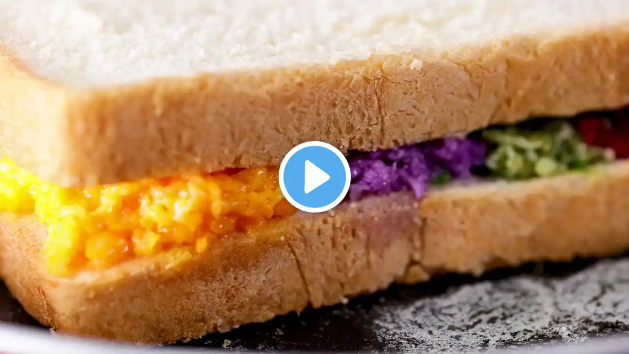 Easy Breakfast Cheesy Toasted Rainbow Sandwich 🌈