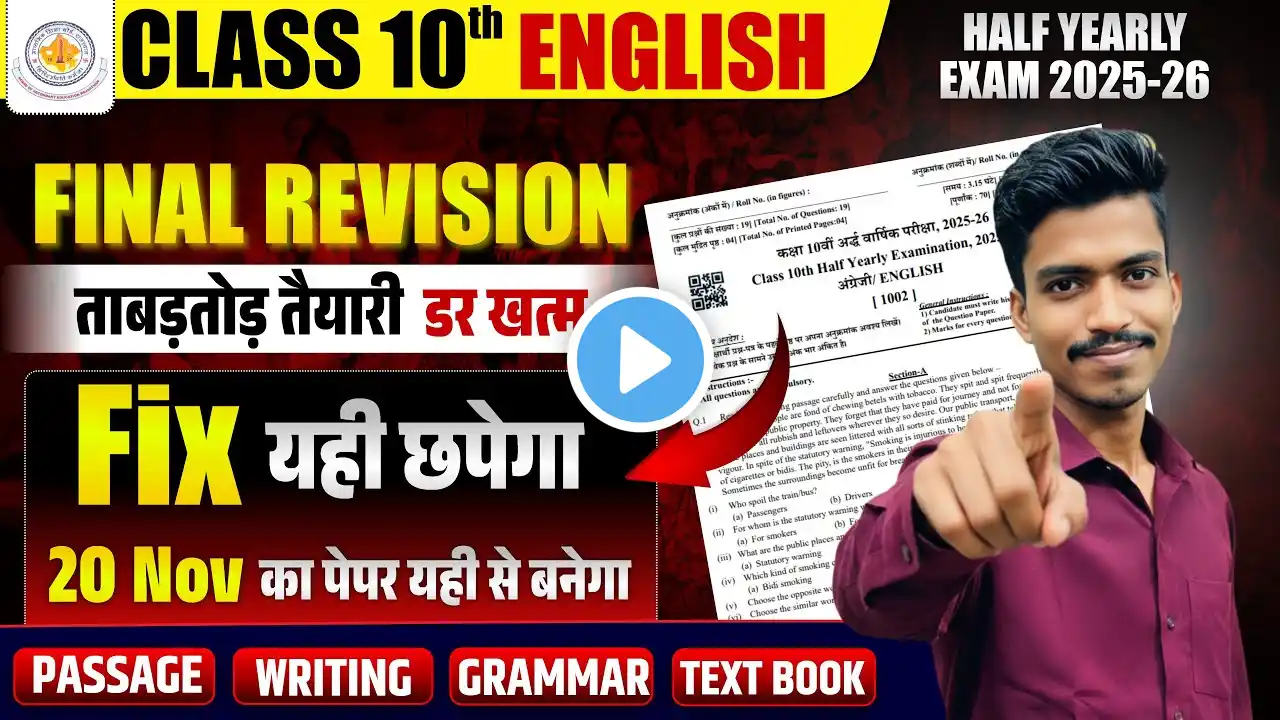 Lecture by Anurag Tyagi Sir Class 12 English Half Yearly Marathon 2025-26🔥Full Syllabus Revision in One Video Half Yearly Marathon Series : https://physicswallah.onelink.me/ZAZB... NCERT Wallah WhatsApp Channel : https://whatsapp.com/channel/0029VbBD... Telegram : https://t.me/pwncertwallah Prepare for your Class 12 English Half Yearly Exams 2025 with Anurag Sir ultimate marathon session! 📚✨ This one-shot full syllabus revision from the Marathon Series will help you cover all important chapters, writing sections, grammar, and literature in a single video to score 95%+ in your exams. In this English Marathon Series, you’ll get: ✅ Complete NCERT-Based Syllabus Revision ✅ Important Questions & Answers ✅ Writing Section & Grammar Tricks ✅ Strategies to Score 95%+ Perfect for half yearly exams, midterms, and board exam preparation 2025, this session is a must-watch for every Class 12 English student! 6439463eb8e5fa0018cb0790 #class12 #englishmarathonseries #anuragsir #halfyearlymarathon #class12english #boardexam2026 #marathon