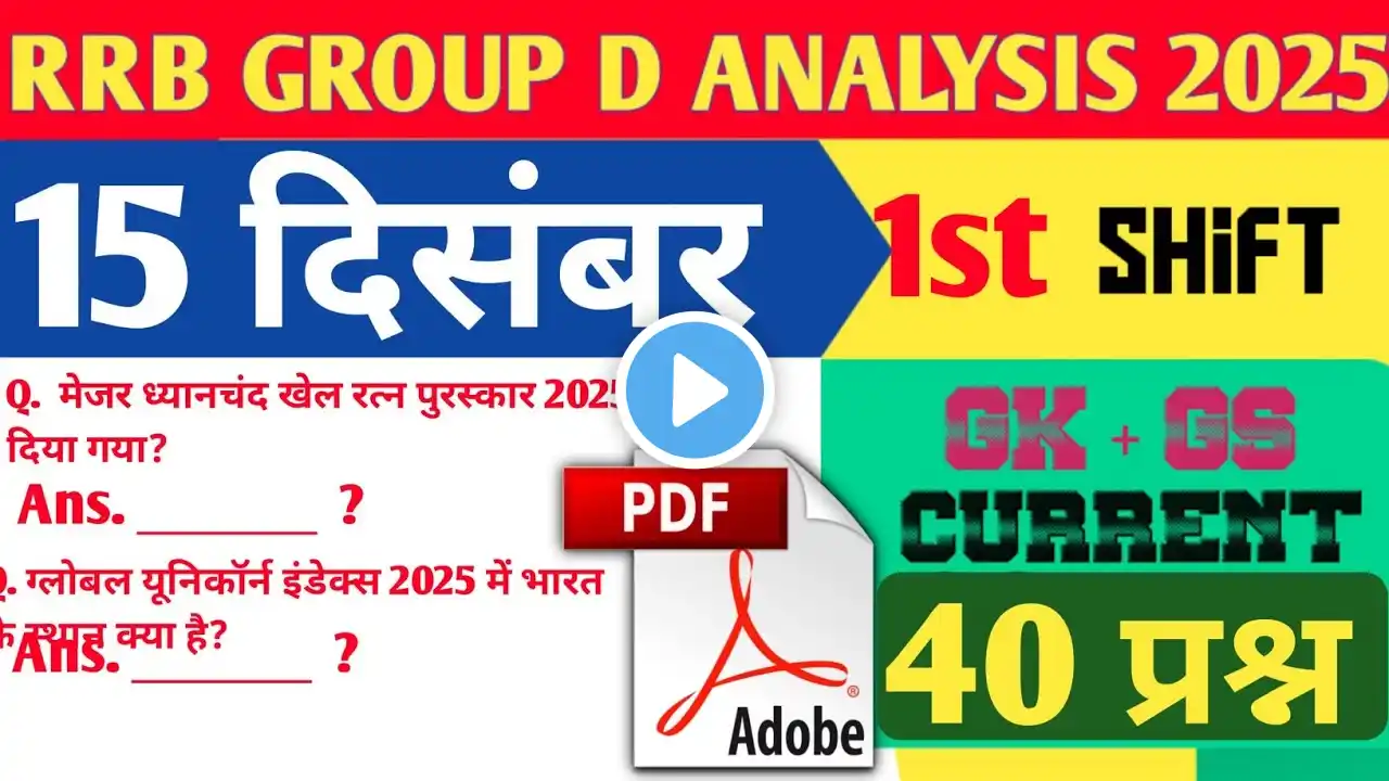 ЁЯУМ рдЗрд╕ рд╡реАрдбрд┐рдпреЛ рдореЗрдВ 5 December Exam shift рдХреЗ рд╕рднреА рдорд╣рддреНрд╡рдкреВрд░реНрдг рдкреНрд░рд╢реНрдиреЛрдВ рдХреЛ Exam Style Explanation рдХреЗ рд╕рд╛рде рд╕рдордЭрд╛рдпрд╛ рдЧрдпрд╛ рд╣реИред тЬФ Physics тЬФ Chemistry тЬФ Biology тЬФ Current Affairs тЬФ General Science ЁЯСЙ рдпрд╣ рд╡реАрдбрд┐рдпреЛ рдЦрд╛рд╕рдХрд░ рдирд┐рдореНрди рдкрд░реАрдХреНрд╖рд╛рдУрдВ рдХреЗ рд▓рд┐рдП рдмрд╣реБрдд рдЙрдкрдпреЛрдЧреА рд╣реИ: тАв RRB Group D тАв SSC GD / CHSL / MTS тАв Railway ALP / Technician тАв Defence Exams тАв State Level Exams ЁЯФ╣ рд╕рднреА рдкреНрд░рд╢реНрди exact exam pattern рдХреЗ рдЕрдиреБрд╕рд╛рд░ Option + рд╕рд╣реА рдЙрддреНрддрд░ + Explanation рдХреЗ рд╕рд╛рде рджрд┐рдП рдЧрдП рд╣реИрдВред ЁЯФ╣ рдмрд╛рд░-рдмрд╛рд░ рдкрд░реАрдХреНрд╖рд╛ рдореЗрдВ рдкреВрдЫреЗ рдЬрд╛рдиреЗ рд╡рд╛рд▓реЗ рд╕рд╡рд╛рд▓ ЁЯФе ЁЯФ╣ Revision, practice рдФрд░ exam preparation рдХреЗ рд▓рд┐рдП рдмреЗрд╣рддрд░реАрди ЁЯТп тЮбя╕П LIKE, SHARE рдФрд░ SUBSCRIBE рдХрд░рдирд╛ рди рднреВрд▓реЗрдВ ЁЯТЩ #RRB #GroupD #SSC #RailwayExam #CurrentAffairs #ExamPreparation #RRBGroupD #RRBNTPC #RailwayGroupD #SSCExam #GeneralScience #GKGS #DailyMCQ #ExamAnalysis #ExamBasedQuestions #CompetitiveExam #5DecemberShiftQuestions #StudyForSuccess #TrendingStudy