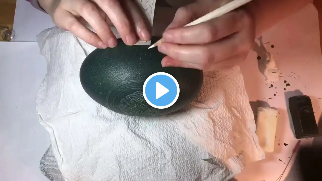 Time lapse measuring and waxing knotwork border on Celtic Cross emu egg