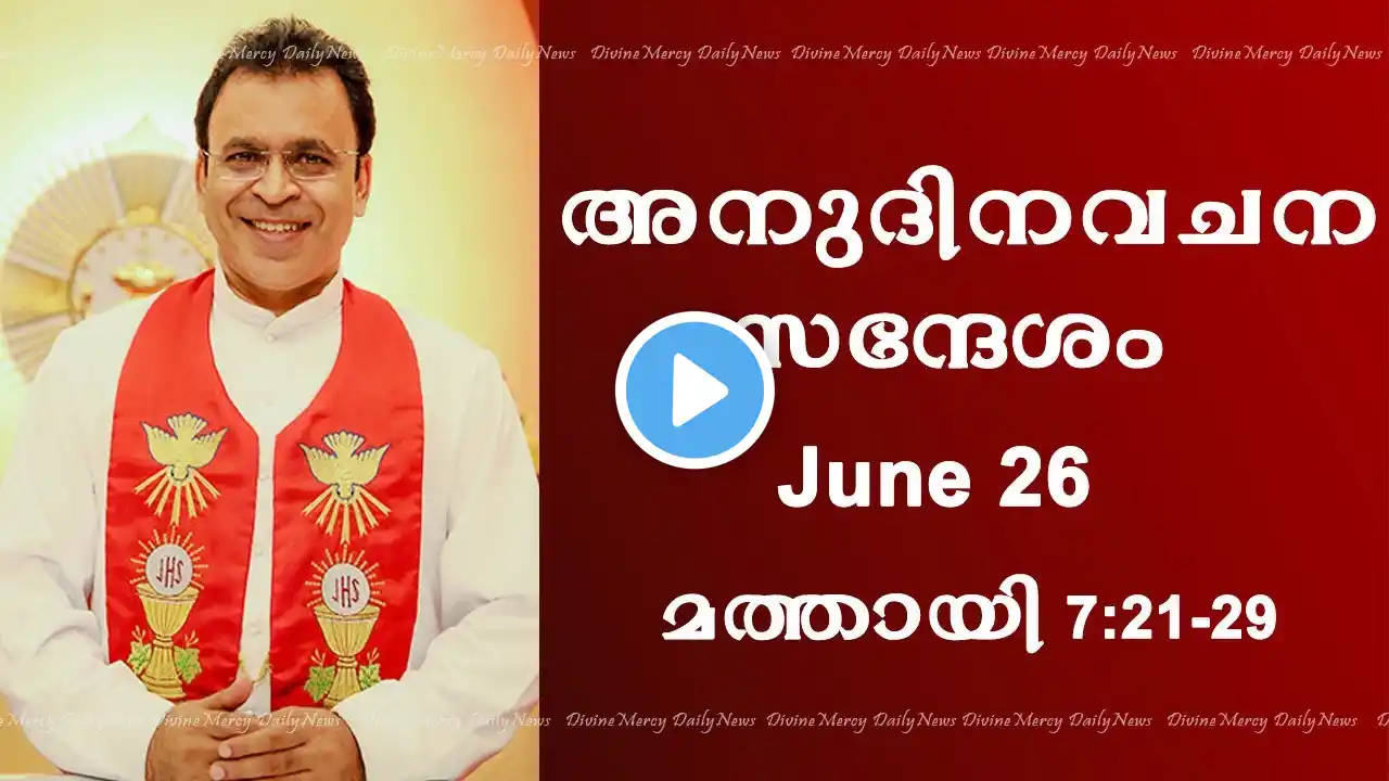The River of Jordan to Damascus Ministries Mt 3 + Acts 9:1-20 Presents IBreviary and Laudate with Thursday, June 26, 2025 - Daily Mass Readings and Reflection Thursday of the Twelfth Week in Ordinary Time Reading I Gn 16:1-12, 15-16 Hagar bore Abram a son and he called him Ishmael. A reading from the Book of Genesis RESPONSORIAL PSALM 106:1b-2, 3-4a, 4b-5 ℟. (1b) Give thanks to the Lord, for he is good. ACCLAMATION BEFORE THE GOSPEL Jn 14:23 ℟. Alleluia, alleluia.Whoever loves me will keep my word,and my Father will love himand he will come to him.℟. Alleluia, alleluia. Gospel Mt 7:21-29 The house built on rock and the house built on sand. ✠ A reading from the holy Gospel according to Matthew