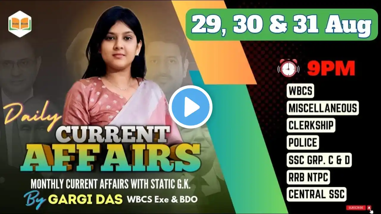 29 & 30 SEPTEMBER | 2025 | Current Affairs+ GK | MCQ | Gargi Das | WBCS(Exe) | Note Book