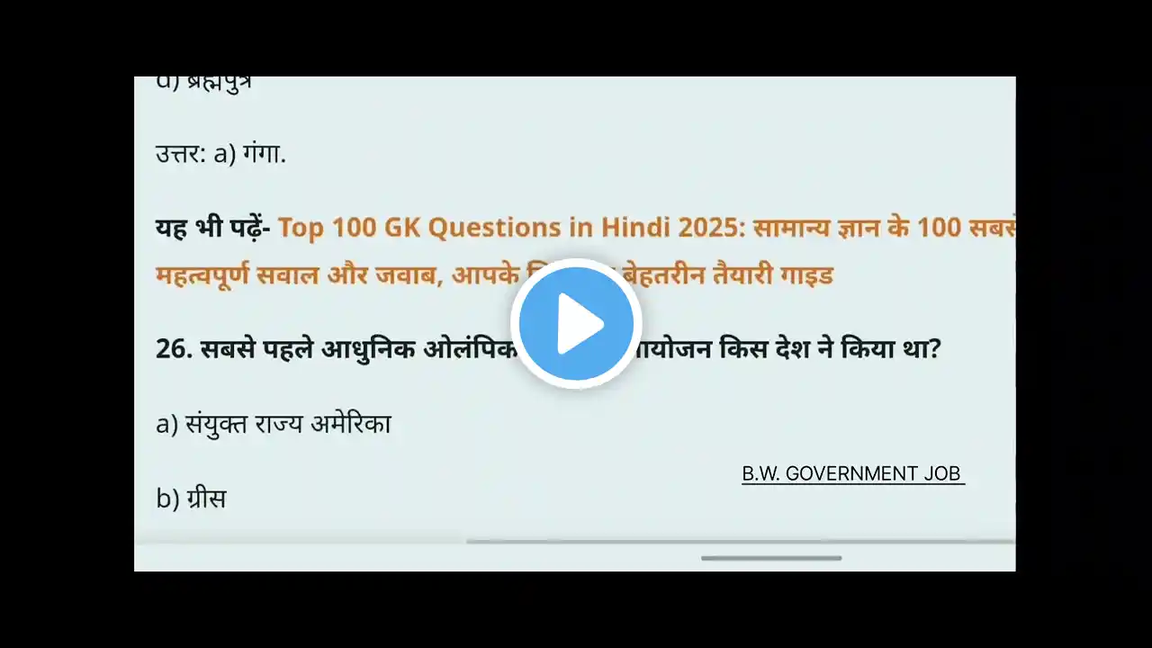 सामान्य ज्ञान | General Knowledge | Top 80 GK/GS questions | SSC GD, MTS, RPF, CRPF | GK quiz videos queries: GK quiz in Hindi general knowledge in Hindi Hindi general knowledge Hindi question Hindi gk quiz Gk questions answers general knowledge GK general knowledge questions answers GK quiz top GK GK in Hindi Hindi GK important GK questions answers India GK chandrayan 3 GK current affairs today news top 20 news जीके प्रश्न उत्तर #GK #सामान्य_ज्ञान #generalknowledge ____________________________________________ ⚠️ Disclaimer: 🚫 Copyright Disclaimer Under Section 107 Of The Copyright Act 1976, allowance is made for "fair use” for purposes such as criticism, comment, news reporting, teaching, scholarship and research. Fair use is a use permitted by copyright statute that might otherwise be infringing. Non-profit, educational or personal use tips the balance in favor of fair use. ⚠️Disclaimer: 🚫This video is made for only providing knowledge and informations. The channel is not providing any harmful content. ____________________________________________ Guys Video achi lagi to like kar dena or channel subscribe kar dena.... Thanks for watching.....