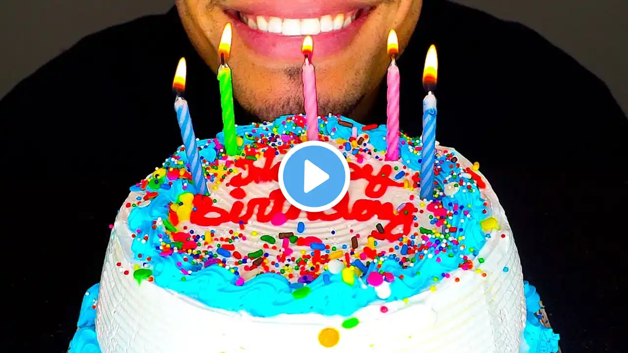 HAPPY BIRTHDAY CAKE JERRY ASMR EATING ICE CREAM CAKE TALKING BIG BITES MUKBANG