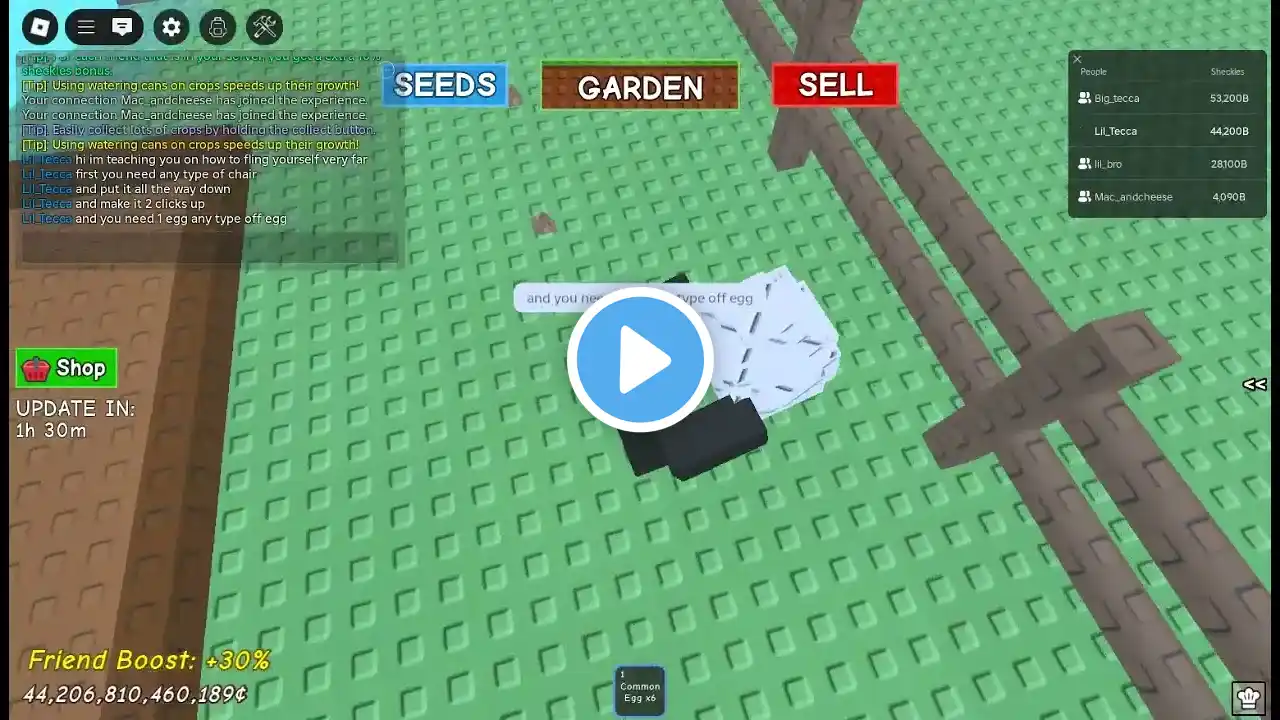 How to fling yourself in grow a garden!!