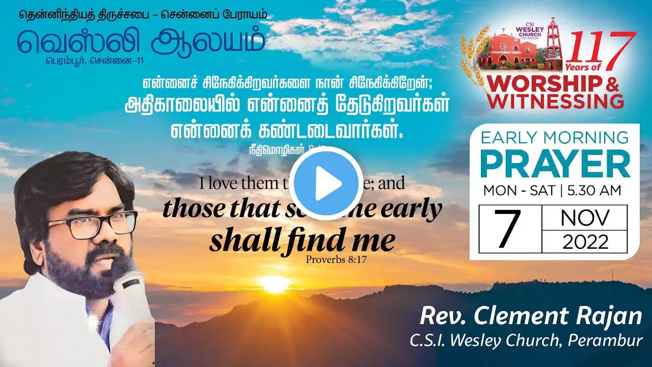 CSI WESLEY CHURCH, PERAMBUR, 7.11.2022, EARLY MORNING PRAYER BY REV. CLEMENT RAJAN