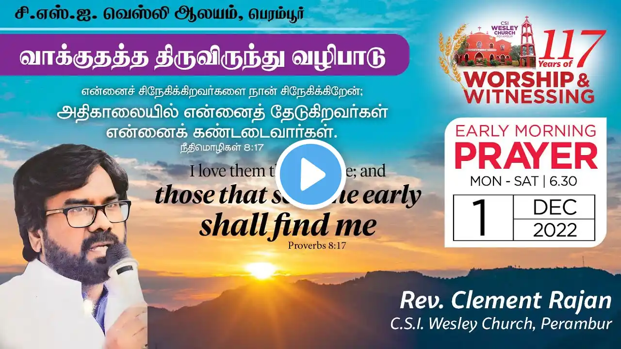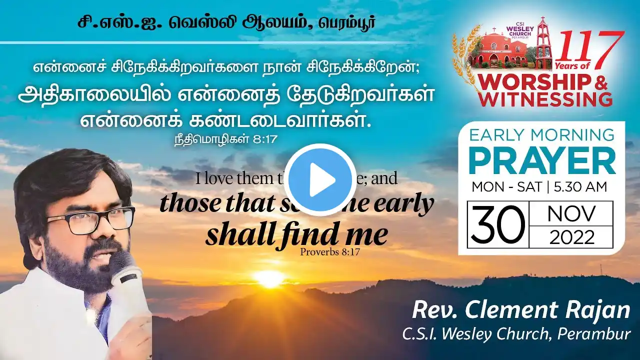 CSI WESLEY CHURCH, PERAMBUR, 30.11.2022, EARLY MORNING PRAYER BY REV. CLEMENT RAJAN