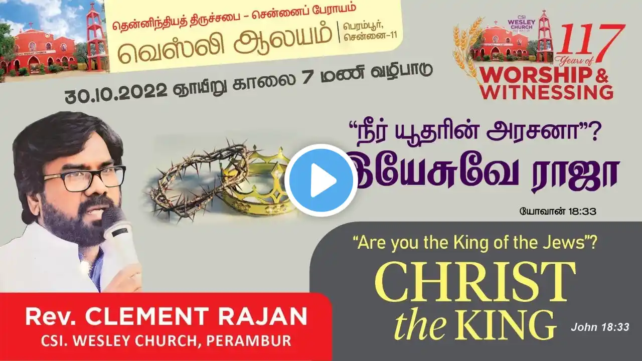 CSI WESLEY CHURCH, PERAMBUR, 30.10.2022, Sunday Worship BY REV. CLEMENT RAJAN