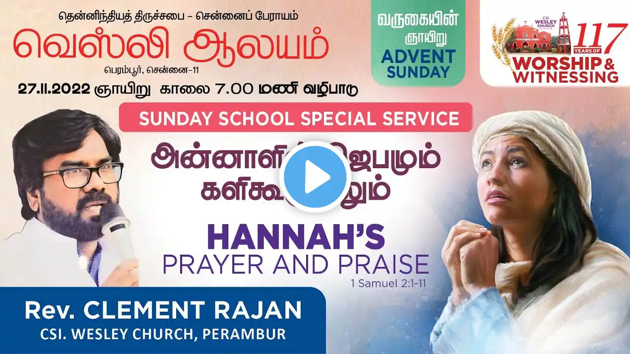 CSI WESLEY CHURCH, PERAMBUR, 27.11.2022, Sunday Worship BY REV. CLEMENT RAJAN
