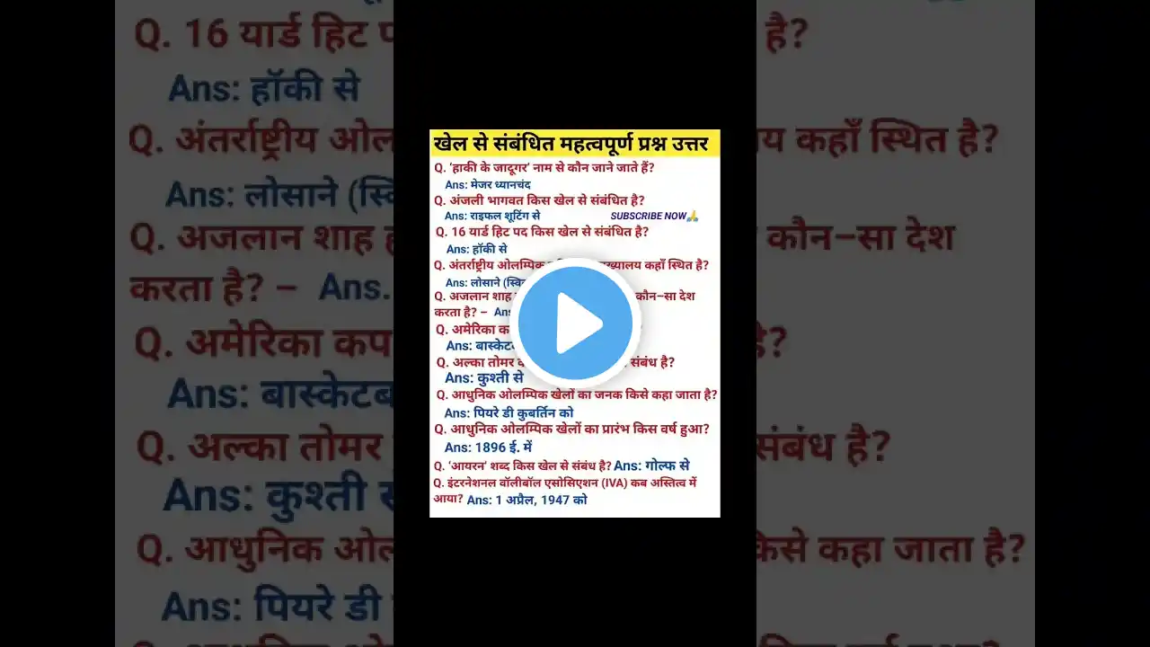 Jharkhand GK PYQ ll Jharkhand Sports - Players PYQ + Most Expected Question. By Smriti Mam #exam #studywithsmriti #ias Download to enroll in the course 👇👇👇 APP LINK* -https://bit.ly/3SMSVnK 📞 Call:-6200398012, 7485840564, 9905917516 OUR OFFICIAL TELEGRAM CHANNEL-https://t.me/studywithsmritigroup2 ☎️ADMISSION HELPLINE NO--6200398012, 7485840564, 9905917516 Whatsapp Channel-whatsapp.com/channel/0029VayN9US35fLr33xjJI0T 🌎Visit our website-https://studywithsmriti.com/ 10:00 am Daily Class Playlists-https://bit.ly/3WZMLTE Jharkhand Gk (Daily Class 8:00PM)- https://bit.ly/4fMFI8b #jharkhandgk #jharkhandcgl #jssccglexam #gk #education #jharkhandcgl #jharkhandjpsc #exciseconstable #studywithsmriti #shorts
