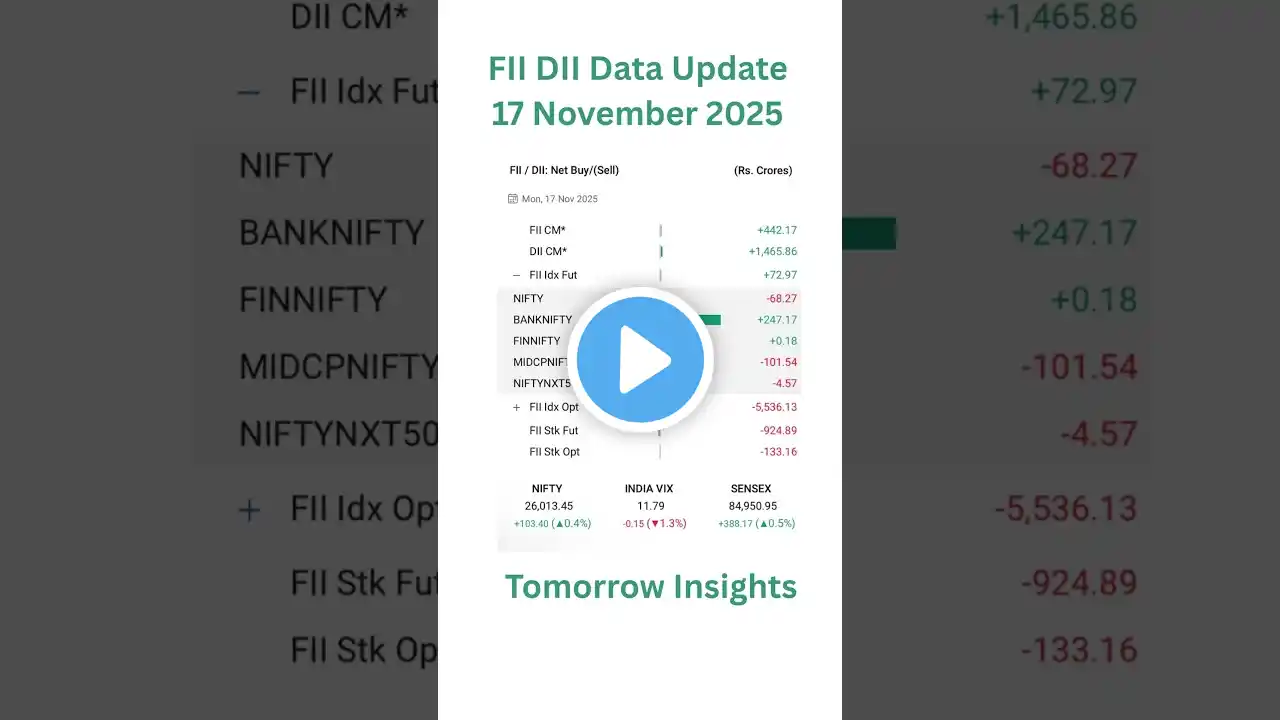 Nifty 50 prediction for 13th November 2025 – Get tomorrow’s trend outlook, key support and resistance levels, and market sentiment analysis. Is Nifty heading towards a breakout or correction? Watch the video till the end to know whether the market trend looks bullish or bearish for tomorrow. 📊 Topics Covered: Nifty 50 technical analysis Global market cues FIIs & DIIs activity Key support & resistance zones Short-term market outlook 📅 Date: 13 November 2025 ⚠️ Disclaimer: This video is for educational and informational purposes only. It does not constitute financial advice or stock recommendations. Please consult your financial advisor before making any investment decisions. #nifty #Nifty50prediction