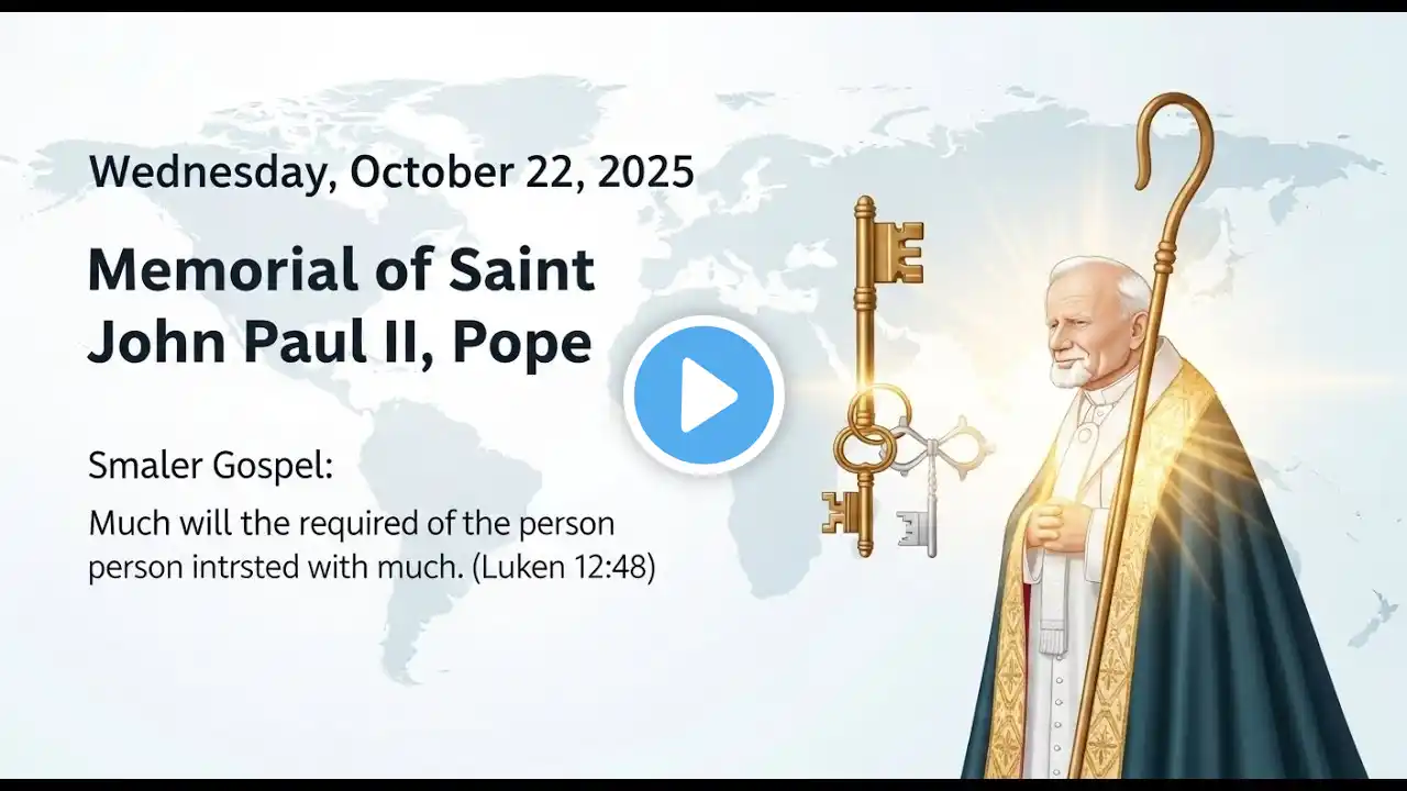 #StThereseLittleWay, #CatholicFaithJourney, #FollowingChrist, #DailyMassReflections, #TrustInGod Today's Catholic Mass Readings & Gospel Reflection – Wednesday, October 1, 2025 Reading 1: Nehemiah 2:1–8 Resp: Psalm 137:1–2, 3, 4–5, 6 Gospel: Luke 9:57–62 Memorial of Saint Thérèse of the Child Jesus, Virgin and Doctor of the Church Lectionary: 457 My dear brothers and sisters, today’s liturgy reminds us that true discipleship is not about convenience or comfort, but about faithful trust in God’s providence and willingness to follow Christ wherever He leads. Like Nehemiah, may we act with courage; like the psalmist, may we long for God’s presence; and like Saint Thérèse, may we discover holiness in the ordinary. We warmly invite you to join us again tomorrow as we continue reflecting on God’s Word together. If you have any prayer requests, please share them, so our community may lift one another before the Lord, especially those carrying heavy burdens. May God bless you and keep you always in His love until we gather again tomorrow. This Gospel reflection is 100% original—written, produced, and owned by The Word Today TV. It includes on-screen text and spoken audio to serve those with visual or hearing impairments. Our mission is to share God's Word in an accessible, devotional, and faithfully Catholic way. Keywords: Saint Thérèse of the Child Jesus, October 1 2025 Catholic Mass readings, Nehemiah 2:1–8 reflection, Psalm 137 prayer, Luke 9:57–62 Gospel reflection, Catholic homily on discipleship, daily Catholic reflections, little way of St Thérèse, Catholic Public Domain Version scripture, Catholic prayer and devotion, living faith with simplicity, cost of following Christ, Catholic liturgy reflection, Christian discipleship teaching, Catholic meditation on readings, Word Today TV original reflection === Disclaimer: This video contains original reflections and commentary on the Catholic daily readings, produced by The Word Today TV. It may also include copyrighted material used under the principles of fair use for religious, educational, and inspirational purposes. We do not claim ownership of any copyrighted content. If you are the copyright owner and believe your material has been used improperly, please contact us at [email protected], and we will respond promptly to resolve the issue. Don't forget to Like, Share, and Subscribe to support our mission of spreading the Word of God daily.