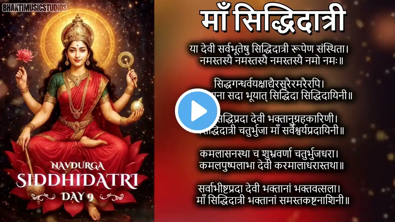 #Navratri2025 #MaaSiddhidatri #JaiMaaSiddhidatri #NavratriDay9 #DeviBhajan #ShaktiPuja #MahaNavami #AsthaKaMarg #BhaktiSangeet नवरात्रि के नौवें दिन, जिसे महानवमी के रूप में भी जाना जाता है, माँ सिद्धिदात्री की पूजा की जाती है। माँ सिद्धिदात्री सभी प्रकार की सिद्धियों की दाता हैं और भक्तों को आध्यात्मिक पूर्णता प्रदान करती हैं। उनकी उपासना से भक्तों को ज्ञान, शांति और समृद्धि की प्राप्ति होती है। इस भजन "जय माँ सिद्धिदात्री" के माध्यम से, माँ की महिमा का गुणगान करें और उनके आशीर्वाद से अपने जीवन को आलोकित करें। On the ninth day of Navratri, also known as Maha Navami, devotees worship Maa Siddhidatri, the bestower of all siddhis (supernatural powers) and spiritual perfection. Her worship grants devotees wisdom, peace, and prosperity. Through this bhajan, "Jai Maa Siddhidatri," immerse yourself in the glory of the Goddess and illuminate your life with her blessings. Astha Ka Marg - Your Path to Divine Connection Welcome to Astha Ka Marg, where devotion meets serenity. This is the perfect place for those seeking solace through the power of bhajans, aartis, and stotras. Immerse yourself in high-quality visuals and soul-stirring audio that will elevate your spirit and deepen your connection with the Almighty. Whether you’re looking to meditate, find peace, or strengthen your faith, our collection of devotional content will guide you on the path of faith. Experience the divine realm and feel closer to God every day. Join thousands of devotees in search of the best bhajans, powerful aartis, and sacred stotras. With every click, let your heart resonate with divine vibrations and your soul align with eternal peace. Subscribe now to Astha Ka Marg and transform your spiritual journey. #Best Bhajans #Top Aartis #Divine Connection #Devotional Songs #Bhakti Sangeet #Spiritual Music #Daily Aartis #Peaceful Bhajans #Bhakti Bhajans #Meditation #Bhajans #Stotras and Mantras अस्था का मार्ग - ईश्वर के साथ संबंध का पथ अस्था का मार्ग में आपका स्वागत है, जहाँ भक्ति शांति से मिलती है। यह उन सभी के लिए एक आदर्श स्थान है जो भजनों, आरती और स्तोत्रों के माध्यम से सुकून की खोज में हैं। उच्च गुणवत्ता वाले दृश्यों और आत्मा को छू लेने वाले ऑडियो में डूब जाएं, जो आपकी आत्मा को ऊँचा उठाएगा और आपको परमात्मा के साथ एक गहरा संबंध स्थापित करेगा। चाहे आप ध्यान करना चाहते हों, शांति पाना चाहते हों, या अपनी आस्था को मजबूत करना चाहते हों, हमारे भक्ति सामग्री का संग्रह आपको विश्वास के मार्ग पर मार्गदर्शन करेगा। दिव्य क्षेत्र का अनुभव करें और हर दिन भगवान के करीब महसूस करें। सर्वश्रेष्ठ भजन, शक्तिशाली आरती, और पवित्र स्तोत्र की खोज में हजारों भक्तों में शामिल हों। हर क्लिक के साथ, अपने दिल को दिव्य तरंगों के साथ गूंजने दें और अपनी आत्मा को शाश्वत शांति के साथ संरेखित करें। अब अस्था का मार्ग को सब्सक्राइब करें और अपने आध्यात्मिक सफर को बदलें। #सर्वश्रेष्ठ भजन #शीर्ष आरती #दिव्य संबंध #भक्ति गीत #भक्ति संगीत #आध्यात्मिक संगीत #दैनिक आरती #शांत भजन #भक्ति भजन #ध्यान भजन #स्तोत्र और मंत्र