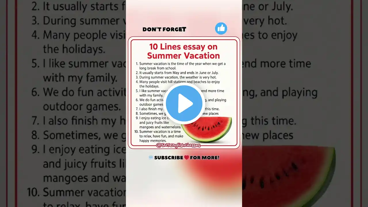 Essay On Summer Vacation / Summer Vacation Essay in English / 10 Lines On SummerVacation in English. Your Queries: essay on summer vacation summer vacation essay in english 10 lines on summer vacation in english paragraph on summer vacation summer vacation 10 lines summer season essay in english summer vacation essay summer vacation essay 10 lines essay on summer vacation in english write an essay on summer vacation 10 lines on summer vacation essay on summer season my summer vacation essay my summer vacation 10 lines #summerseason10lines #summerseason10linesessay #summerseasonessay #summerseasonessayinenglish #shorts