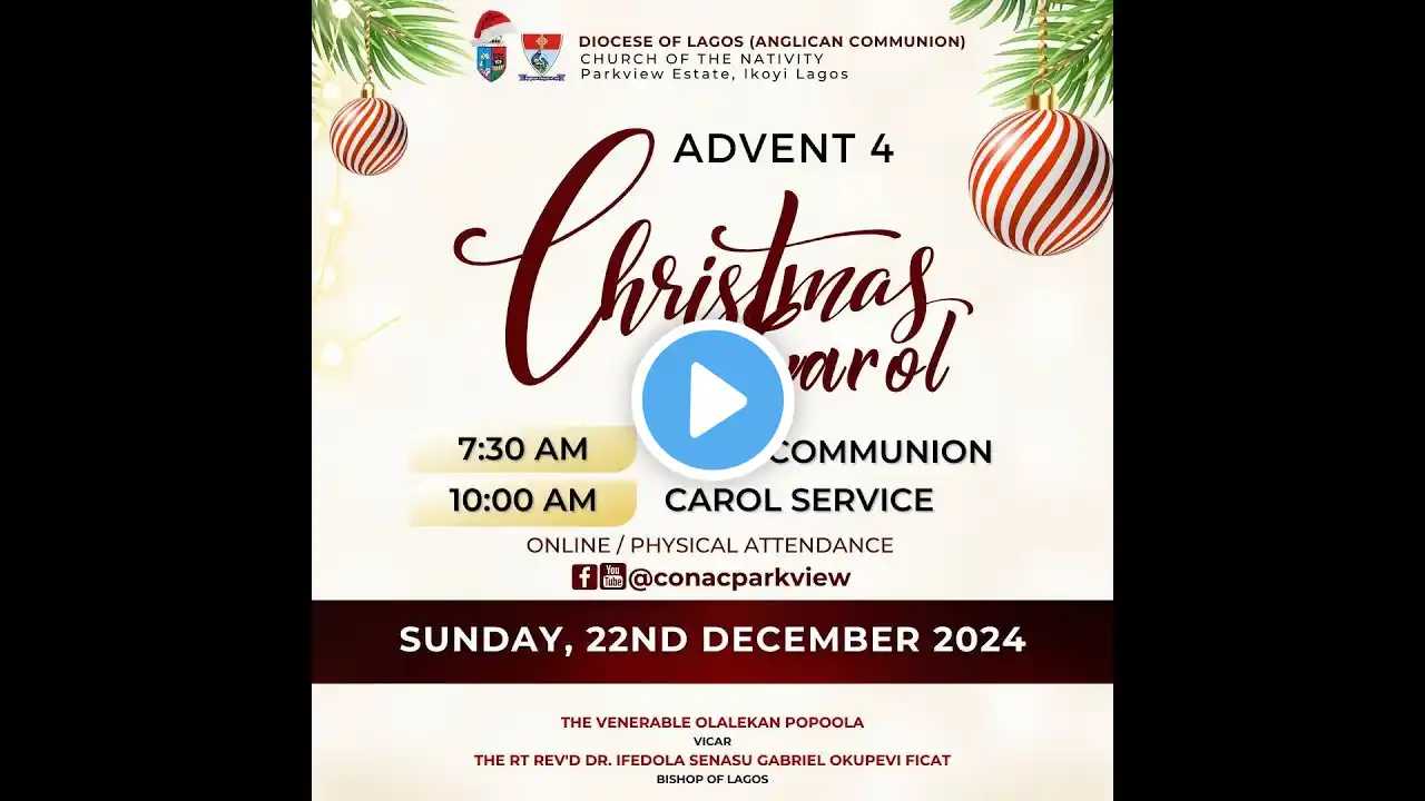 Live From All Souls’ Church, Kayode Animashaun (Road 15), Lekki Phase 1. Diocese of Lagos (Anglican Communion) Sunday, 20th December, 2024 | 7:30a.m. ++ We Do Not Have The Copyright Of Songs & Hymns Played In This Live Stream. Theme: Submission: Key To Divine Favour. CELEBRANT: The Rev'd Bamidele Olayanju. SERMON: Postulant Ezenwugo Makuochukwu . INTERCESSION: Mrs. Yetunde Collins. You Can Pay Your Tithe, Offerings, Seed Of Faith Online Via This Page : www.paystack.com/pay/allsoulslekki Vicar & Archdeacon : The Venerable John Oghenekevwe Agboro. Diocesan Bishop : The Rt. Rev’d Dr. Ifedola Gabriel Senasu Okupevi. FICAT. *Follow us at, All souls’ Church, Lekki Phase 1, Lagos on FACEBOOK : / allsoulsanglicanchurchlekki YOUTUBE: / allsoulsanglicanchurchlekki INSTAGRAM : / allsoulslekki (If there is a break in transmission at anytime, kindly hit any of the links provided above and it will take you to whatever is happening Live). VISIT OUR WEBSITE FOR OUR UPCOMING EVENTS : www.allsoulschurchlekki.org