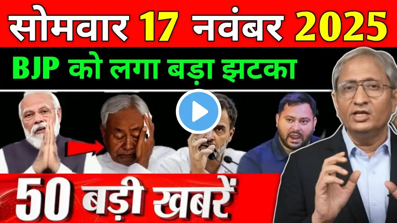 11 November 2025|Aaj Ki 25 Sabse Badi Khabrein | Top 25 Breaking News Today |Ravish Kumar PrimeTime. Join us to know the biggest news of India and the world first! Here you will get the most accurate and fast information about politics, economy, sports, entertainment, technology, weather and viral news. TODAY TOP HEADLINES: Pahalgam terror attack: India bans all imports from Pakistan,third major action after airspace and Indus waters Manipur violence continues even after two years: Deep ethnic rift in Kuki and Meitei communities,thousands displaced Stampede at Lerai Devi temple in Goa,6 devotees killed,more than 50 injured Karnataka minister's controversial statement:"Give me a suicide bomb Modiji,I will go to Pakistan" Iran-backed Houthis fire long-range missiles at Israel,Trump orders US military to retaliate PM Modi's warning to Pakistan:"This time the decision will be final" Pakistan tests 450 km range Abdali missile,show of power amid tension High alert at Colombo airport after news of Pahalgam attack suspect on Sri Lanka flight Red alert in many states including Delhi-NCR:Warning of strong storm,hailstorm and landslide NIA arrests Tahawwur Rana,interrogation intensified,voice and handwriting samples of 26/11 attack accused taken #trendingnews #super100news #superfastnews #topheadlines #LatestNews #hindinews #newsinhindi #hindisamachar #samachar #news #electionnews #topnews #pmmodi #DLS_News #topnewstoday #100news #upnewstoday #Breaking_News #Main_News #IndiaNews #PMModiNews #BusinessNews #CricketNews #IPL2025 #WeatherNews GeneralNewsKeywords: 1.N2R 2.BreakingNews 3.18May2025 4.TrendingNews 5.Super100News 6.SuperfastNews 7.TopHeadlines 8.LatestNews 9.HindiNews 10.NewsinHindi 11.HindiSamachar 12.Samachar 13.News 14.ElectionNews 15.TopNews 16.PMModi 17.DLSNews 18.TopNewsToday 19.100News 20.UPNewsToday 21.BreakingNews 22.मैंसमाचार 23.IndiaNews 24.HindiNews 25.TopHeadlines 26.PMModiNews 27.BusinessNews 28.CricketNews 29.IPL2025 30.WeatherNews 31.IndiaNews 32.BreakingNews 33.AajKiTazaKhabar 34.HindiNews 35.TodayNews 36.LatestNews 37.IndiaBreakingNews 38.TopHeadlines 39.ViralNews 40.LiveNews 41.TrendingNews 42.LatestSamachar 43.BharatNews 44.DeshDuniyaKiKhabar 45.NewsUpdates 46.DailyNews 47.NewsoftheDay 48.HindiNewsIndia 49.Today’sMainSamachar 50.MainNewsofToday18May2025 aaj ka news, aaj ka samachar, aaj ka taaja samachar, aaj ke taaja samachar, aaj ki khabrein, aaj ki news, aaj ki taaja khobor, aaj ki taaja news, aaj tak news, abp news live, breaking news, breaking updates, hindi news live, hindi news ravish Kumar, hindi updates, iran ki khabar, iran news, khobor, latest news, live news, news, news today, news update, political news, ravish kumar, ravish kumar news, taaja samachar, top news, us news, world news, youtube trending Political&GovernmentNews: 1.Pmnarendramodinewstoday 2.CMyoginewstoday 3.Rahulgandhinewstodayspeechhindi 4.CMRekhaguptatodaynews 5.Arvindkejriwalnewstodayhindi 6.CMNitishkumarlatestnewstoday 7.PahalgamTerrorAttack 8.India-PakistanWarOnPahalgamAttackLIVE:पाकिस्ताननेतानदीमिसाइलें!युद्धशुरूLIVE SportsNews: 1.Cricketnewstoday 2.IPL2025newstoday Weather&NaturalDisasterNews: 1.Today’sweatherinformation 2.Today’sweathernews 3.Howwilltheweatherbetoday 4.Today’sweathersituation 5.Weatherupdatetoday YourQueries: 1.ravishkumar 2.ravishkumarnews 3.ravishkumaronwaqfboard 4.ravishkumarlive 5.ravishkumartodaynewshindi 6.ravishkumartodayofficialchannel 7.ravishkumarnewstoday 8.ravishkumar’slatestnewstoday 9.ravishkumarnewsaajtak 10.today’snewswithravishkumar 11.ravishkumar’stoday’snews 12.ravishkumar’snewnewstoday 13.ravishkumarnewslive 14.ravishkumarnewschannel 15.ravishkumarnewstodaywaqfboard 16.ravishkumarnewstodaylive 17.ravishkumarnewstodayinhindi 18.ravishkumarnewslatest 19.ravishkumarnews24 ⚠️ Disclaimer: This channel is created only for the purpose of providing news and information.All the information given in this video is based on public sources,news agencies and reports.We do not spread rumours,misinformation or content that harms the image of any person,community,religion,government or organization. #latestnews #news #hindinews We strictly follow the following laws and policies: ✅IPCSection499&500–No defamation of any person ✅ITAct2000–News shared is taken from certified sources only ✅CopyrightAct1957–External clips,images,or audio are used only for the purpose of news reporting and fall under Fair Use ✅IPCSection153(A)&295(A)–No content hurting religious,caste or community sentiments ✅IPCSection505(1)&505(2)–No news that incites unrest,hatred or violence 📜CopyrightDisclaimer(Section107oftheCopyrightAct1976):Allowance is made for fair use for purposes such as criticism,comment,news reporting,teaching,scholarship,and research. 👉Like | Share | Subscribe 🔔Bellicon दबाइए ताकि हर बड़ी खबर आप तक सबसे पहले पहुँचे #breakingnews #ravishkumar #topnews #aajkitazakhabar #indianews #hindinews #latestnews #news