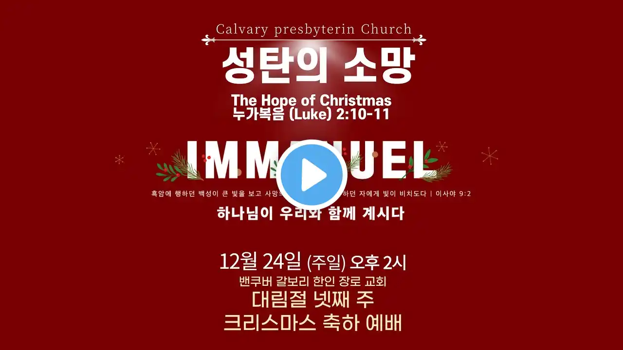 성탄의 소망 [누가복음 (Luke) 2:10-11] (2023년 12월 24일 주일 예배)